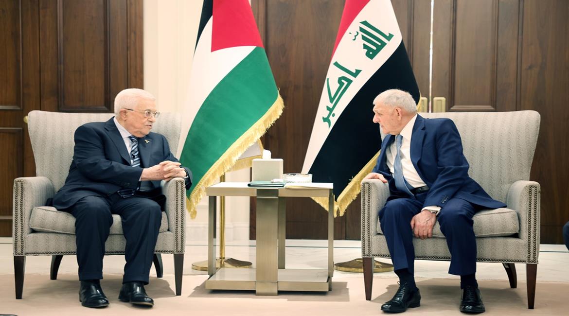 الرئيس محمود عباس خلال لقائه رئيس جمهورية العراق الشقيق عبد اللطيف رشيد.