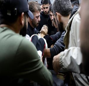 نابلس - مواطنون وأقارب الشهيد الطفل عبد الله هواش (11 عاما) يودعونه ويشيعون جثمانه في نابلس.