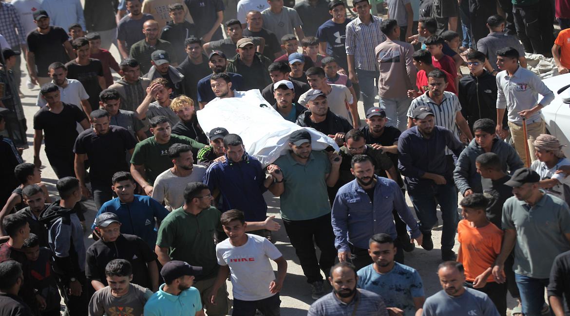 عائلات الشهداء تتعرف على جثامينهم المحتجزة بعد تسليمها عبر الصليب الأحمر في خان يونس