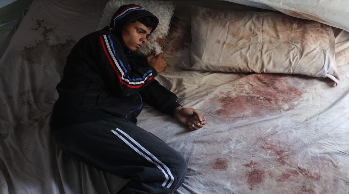 المواطن أحمد أبو سعدة (20 عاما) يمر بأزمة نفسية حادة أدت إلى فقدانه القدرة على الكلام، عقب إستشهاد زوجته في قصف اسرائيلي بعد 3 أيام من زفافهما