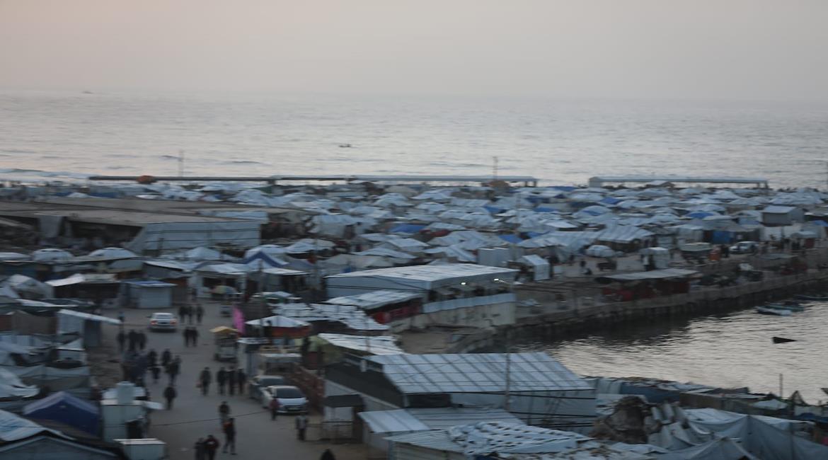 تكدس لخيام النازحين في ميناء غزة المدمر، في ظل ظروف معيشية قاسية