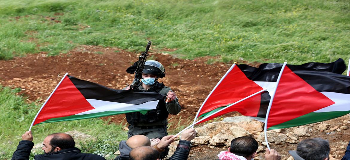 نابلس - جنود الاحتلال يقمعون مسيرة سلمية ضد الاستيطان في قرية بيت دجن.