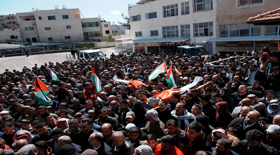 تشييع 3 شهداء ارتقوا في هجوم المستعمرين على قرية أبو فلاح شمال شرق رام الله