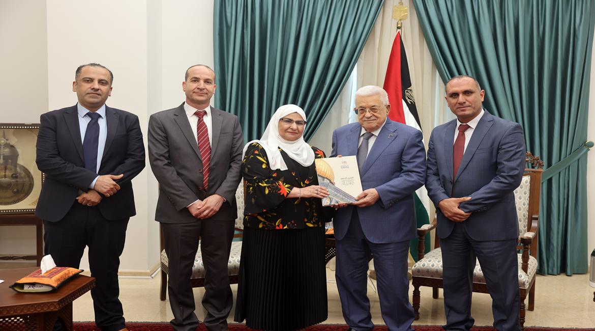 رام الله - الرئيس محمود عباس، يتسلم التقرير السنوي لديوان الرقابة الادارية والمالية لعام 2024،خلال استقباله رئيسة ديوان الرقابة الإدارية والمالية أمل فرج