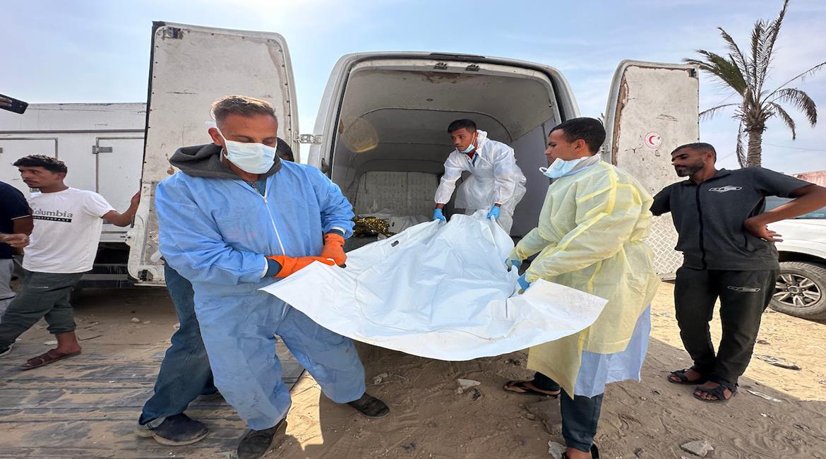 الصليب الأحمر يسلم جثامين شهداء إلى مستشفى ناصر في خان يونس بعد استلامها من الاحتلال الإسرائيلي