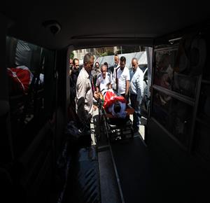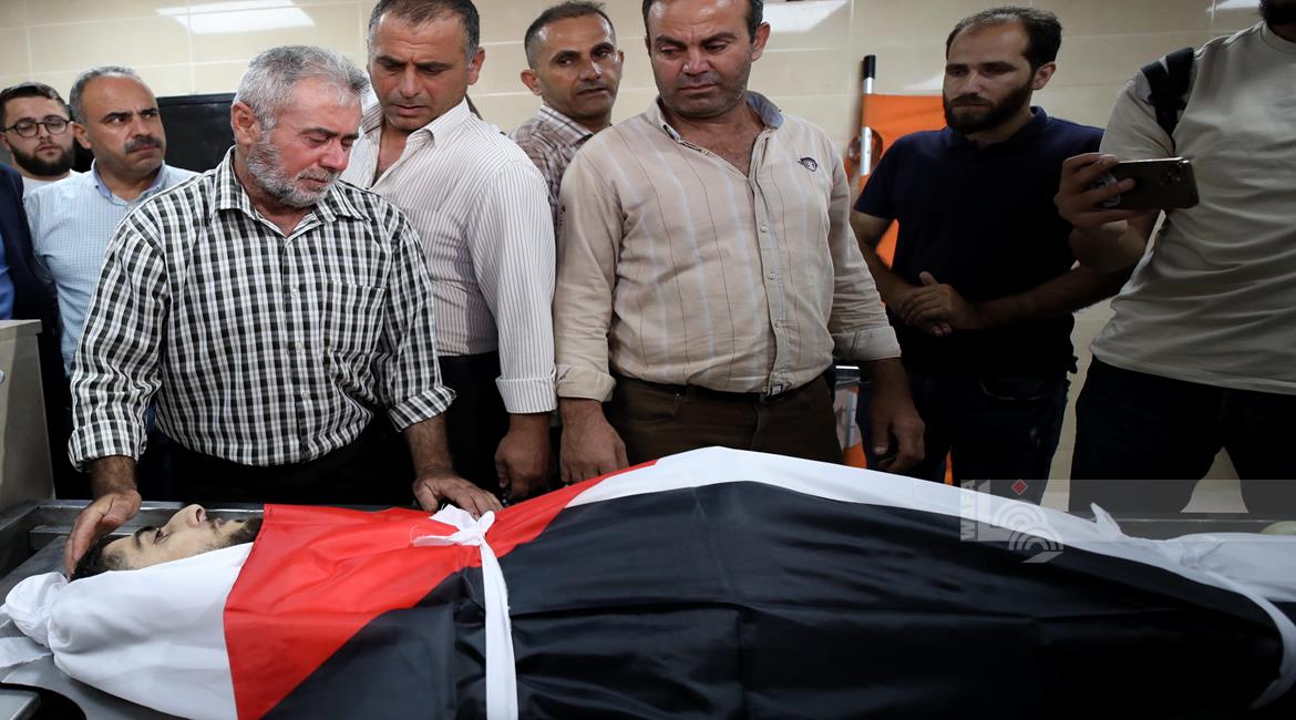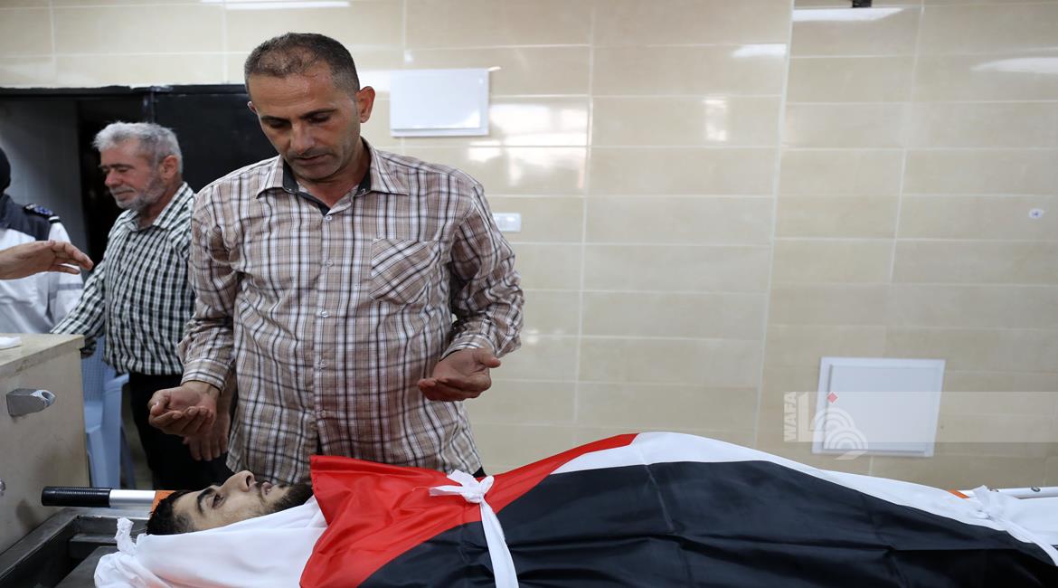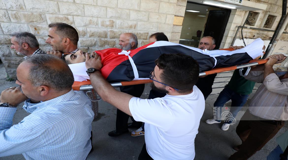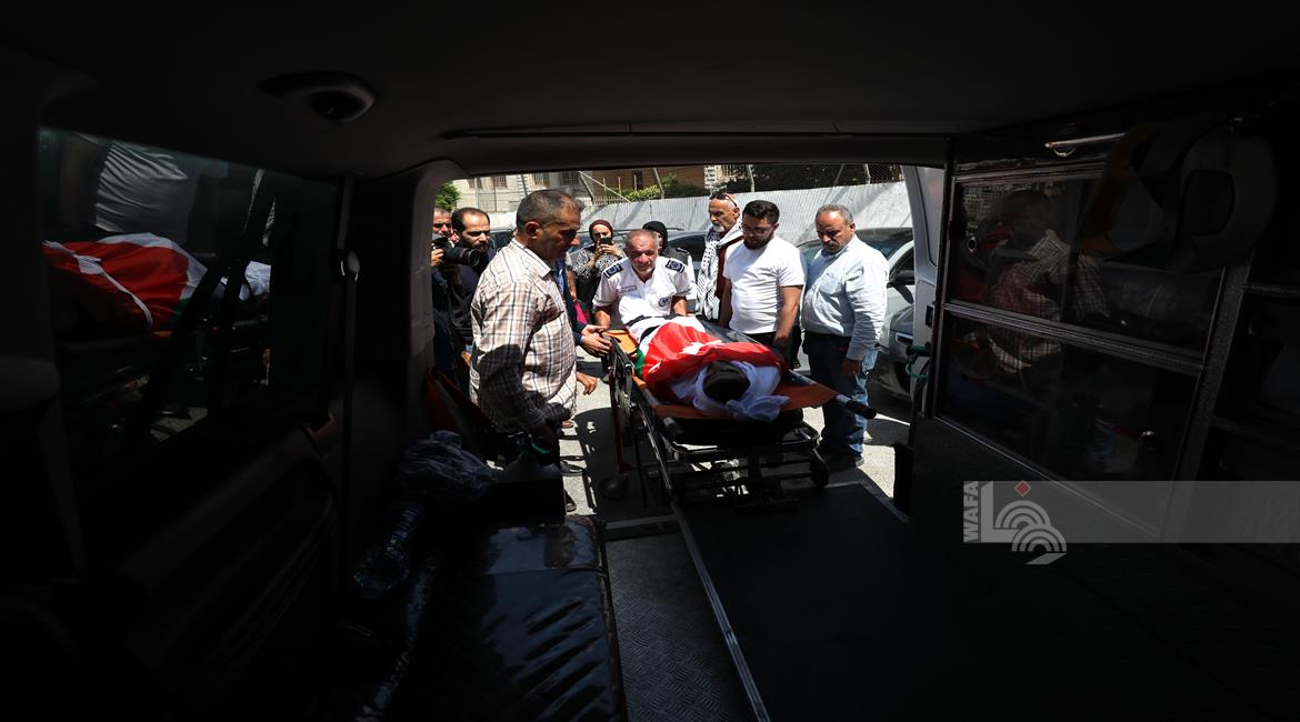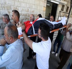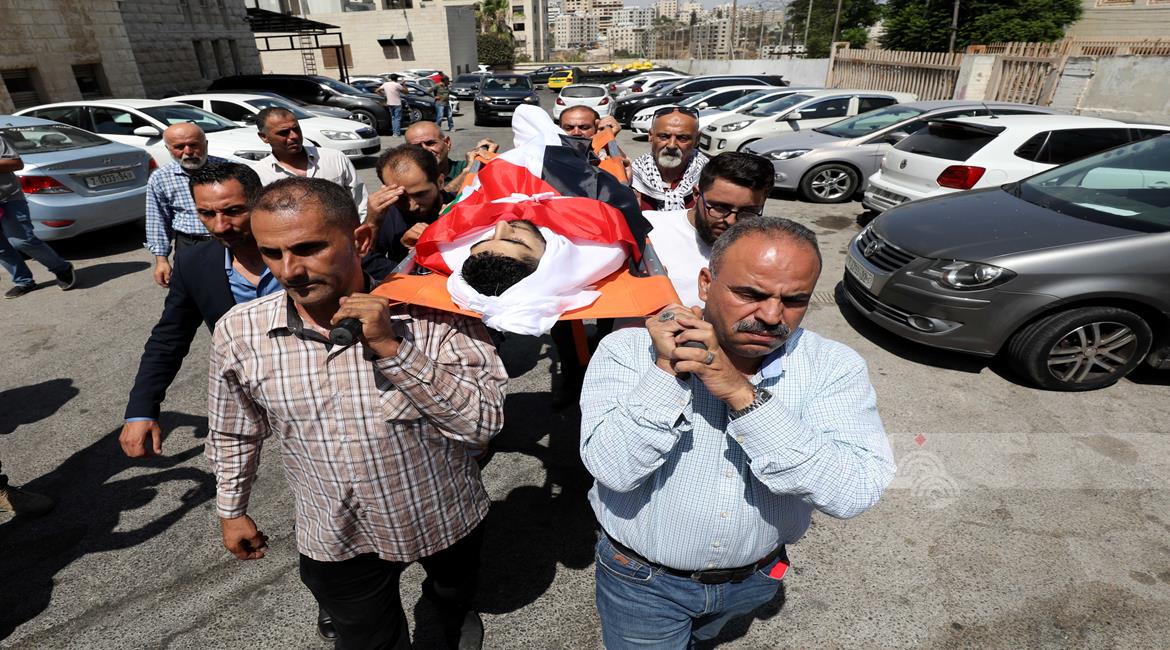 نابلس - وداع وتشييع جثمان الشهيد معين أصفر من امام مستشفى رفيديا بمدينة نابلس