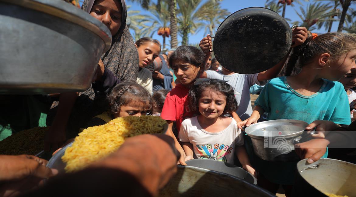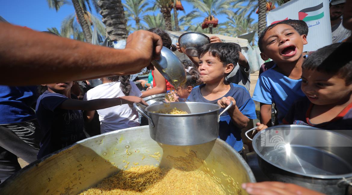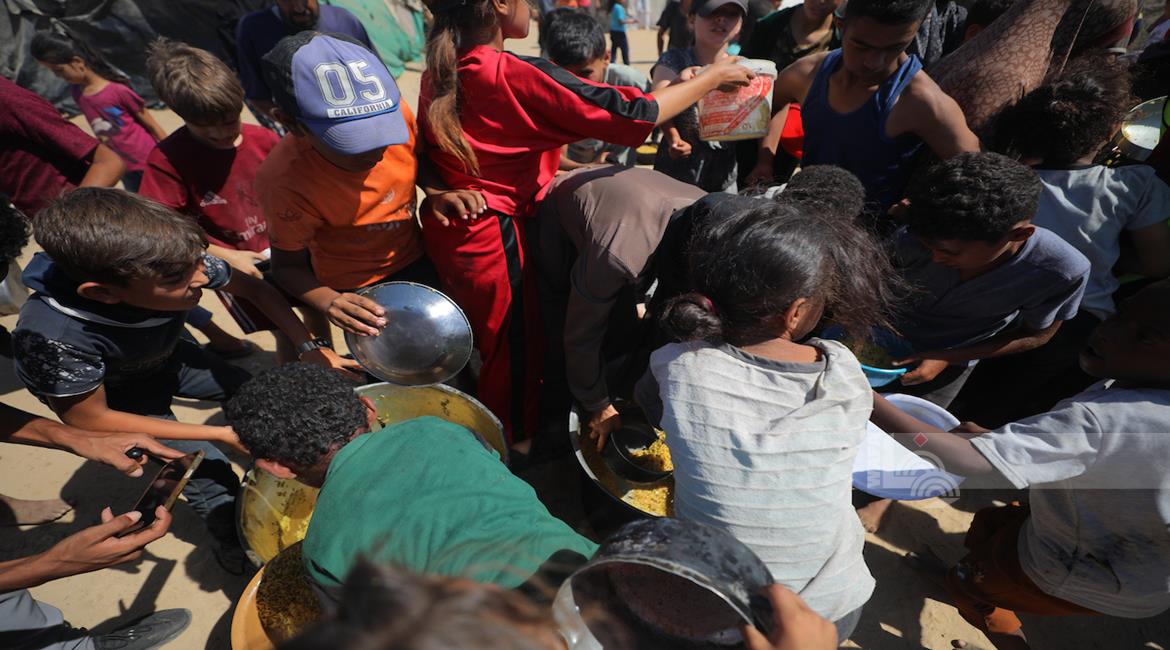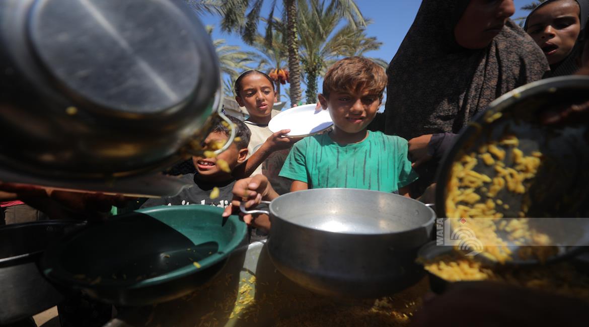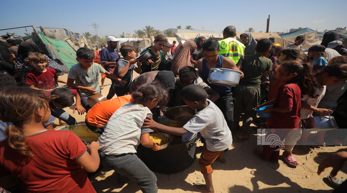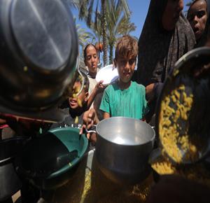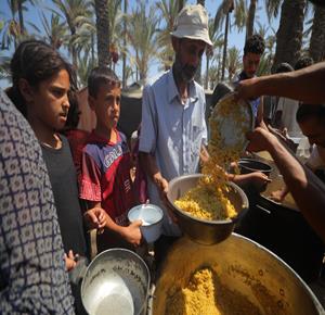 غزة - مواطنون يتزاحمون للحصول على طعام مجاني في دير البلح وسط قطاع غزة
