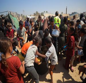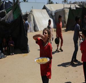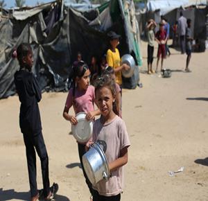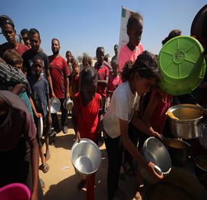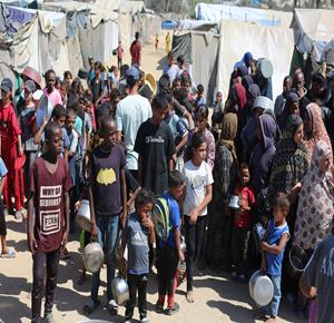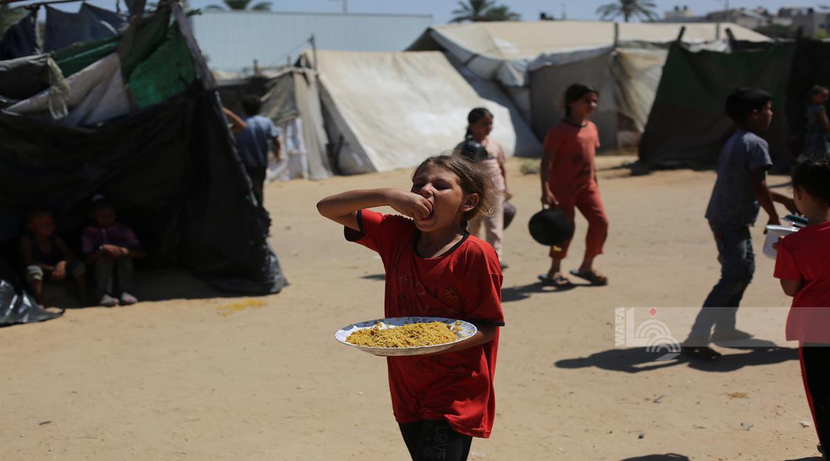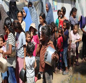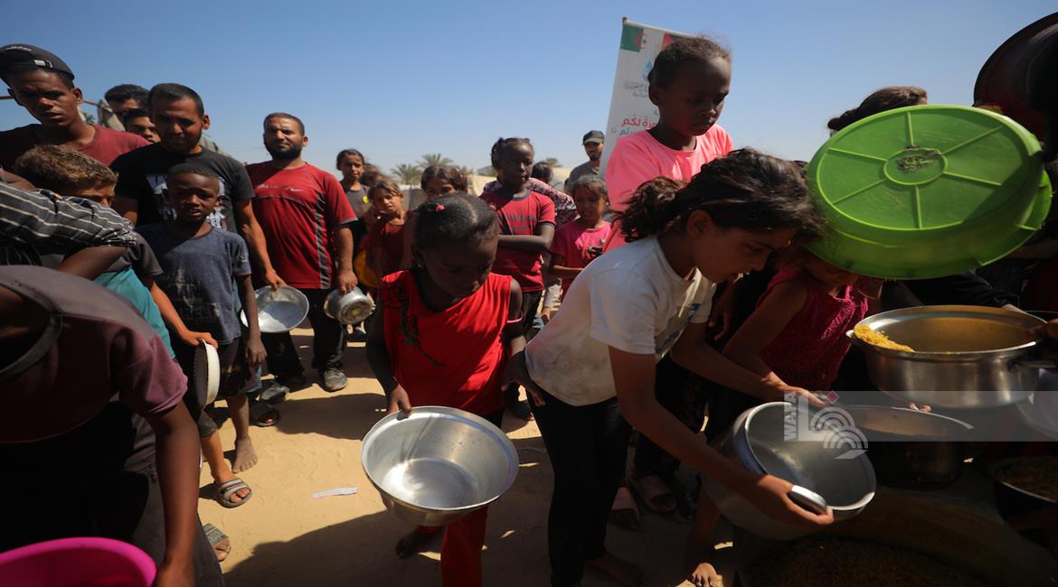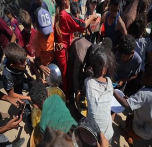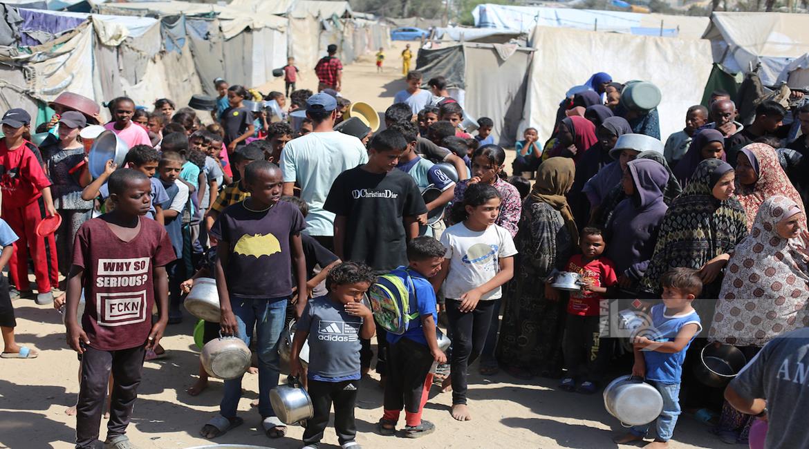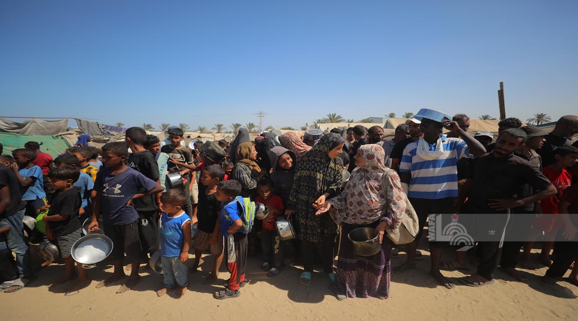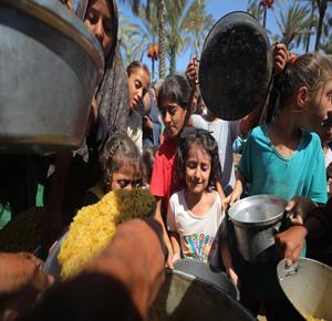 غزة - مواطنون يتزاحمون للحصول على طعام مجاني في دير البلح وسط قطاع غزة