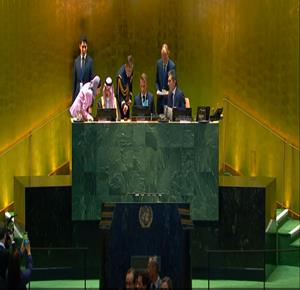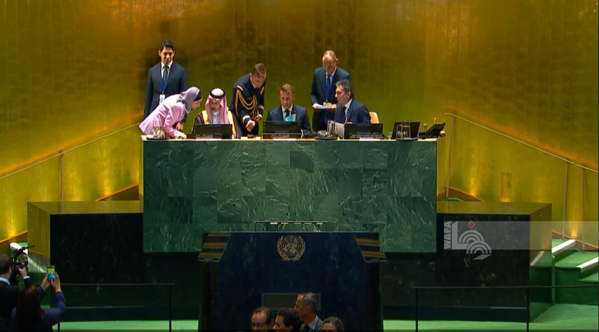 نيويورك - استئناف أعمال المؤتمر الدولي رفيع المستوى لتسوية القضية الفلسطينية بالطرق السلمية وتنفيذ حل الدولتين بمقر الأمم المتحدة في نيويورك