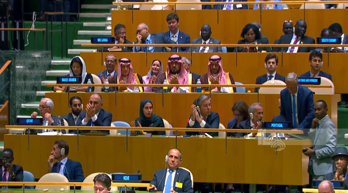 القيادة الفلسطينية وعلى رأسها الرئيس محمود عباس، خلال متابعتهم عبر الفيديو للمؤتمر الدولي رفيع المستوى للتسوية السلمية لقضية فلسطين وتنفيذ حل الدولتين