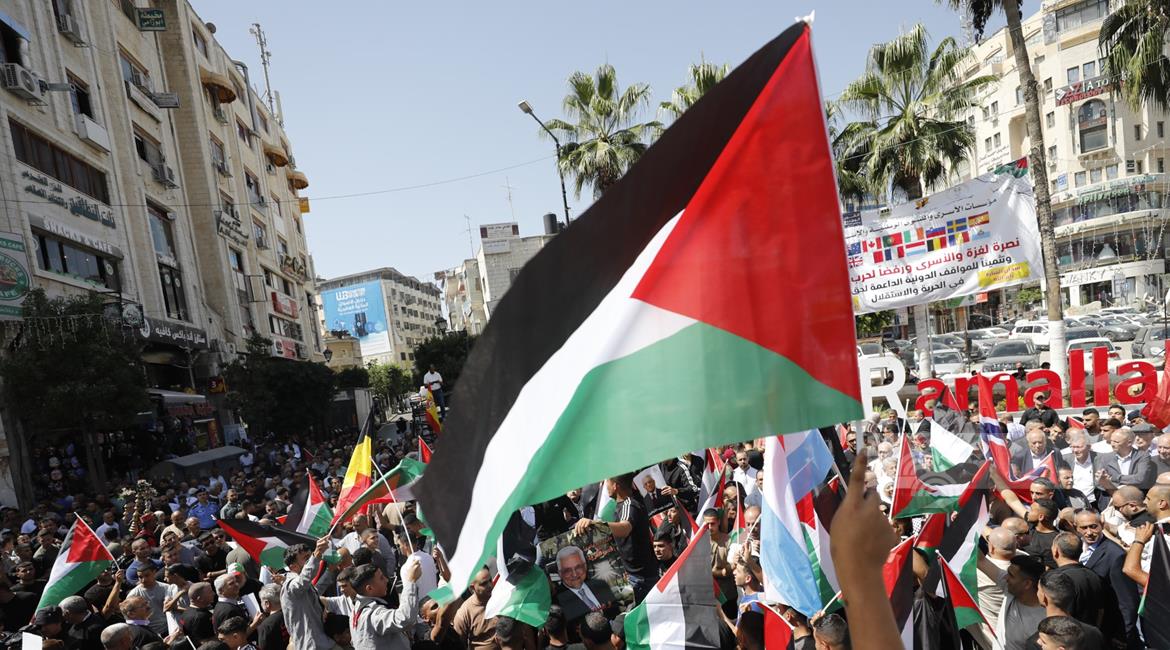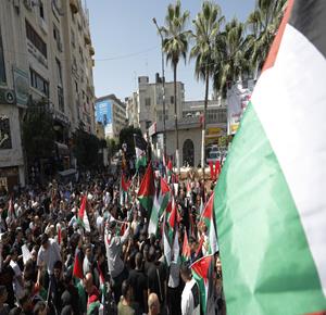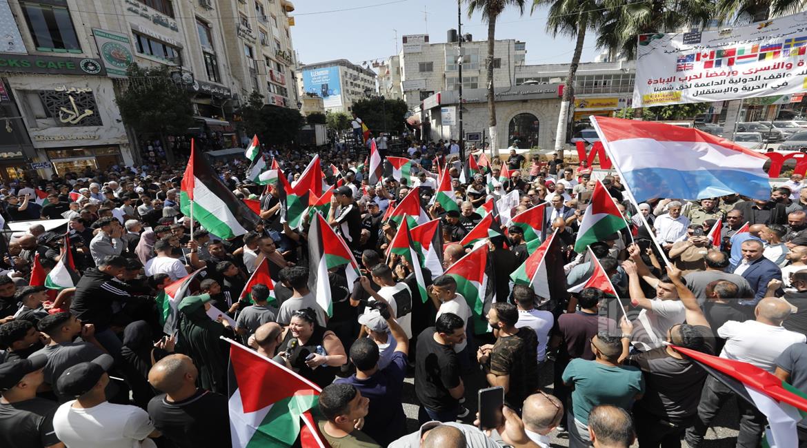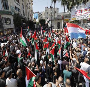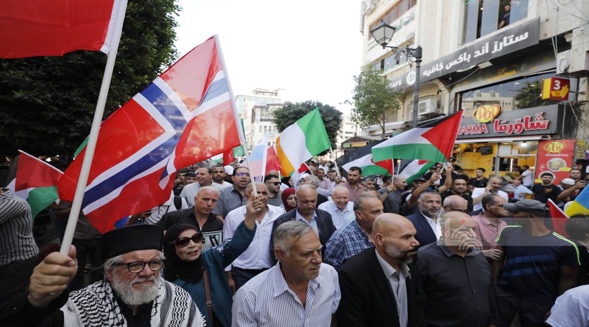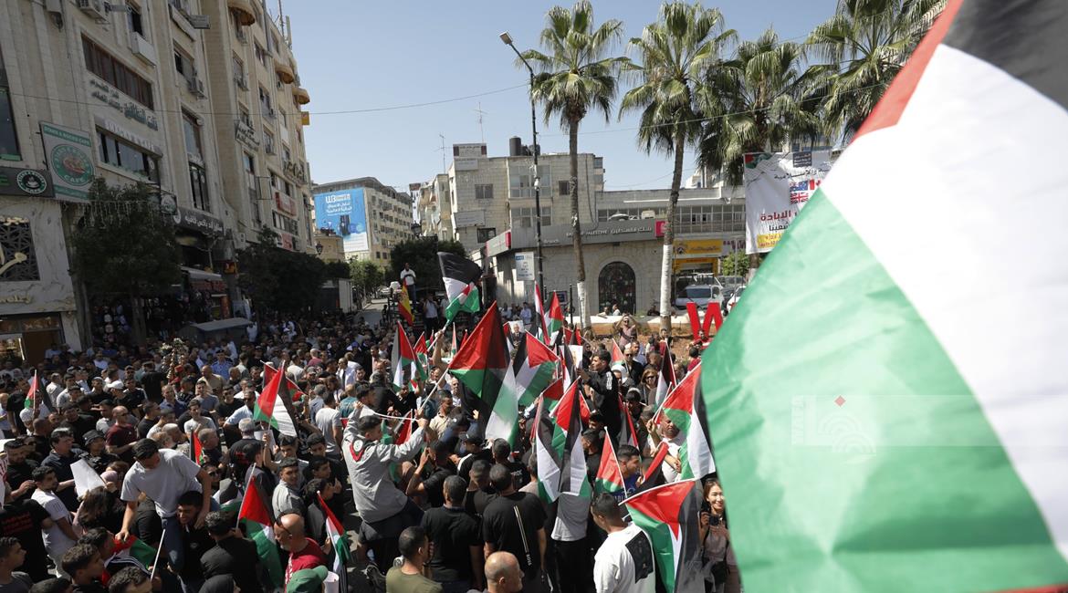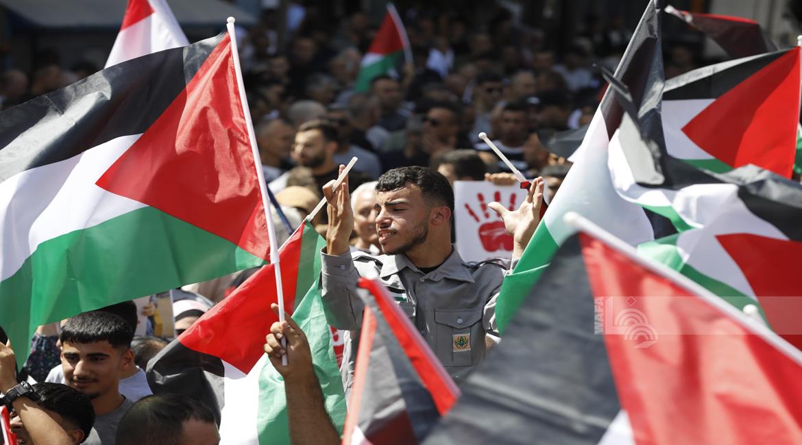 رام الله - مشاركون في مسيرة مركزية وفاء لدماء الشهداء وصمود الأسرى وتثمينا للمواقف الدولية التي انتصرت للحق الفلسطيني