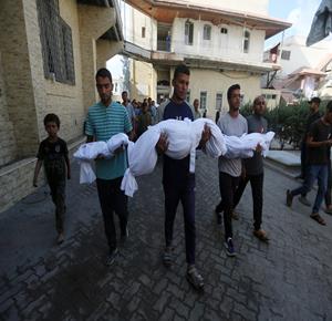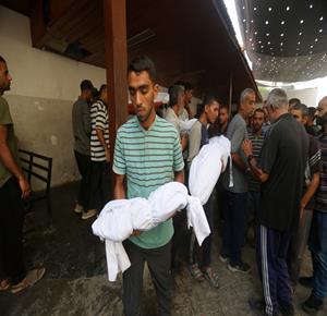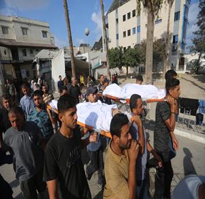 غزة - تشييع عدد من الشهداء من بينهم أطفال في مستشفى المعمداني بمدينة غزة