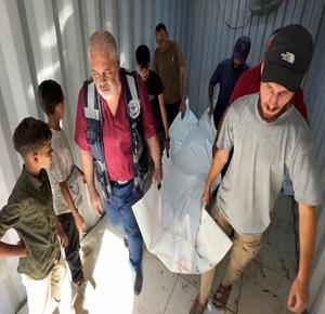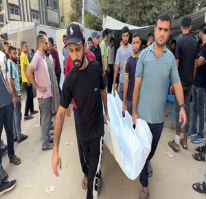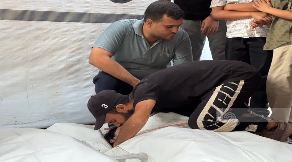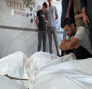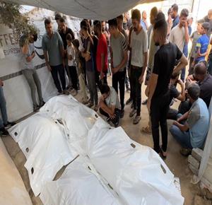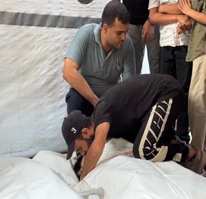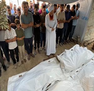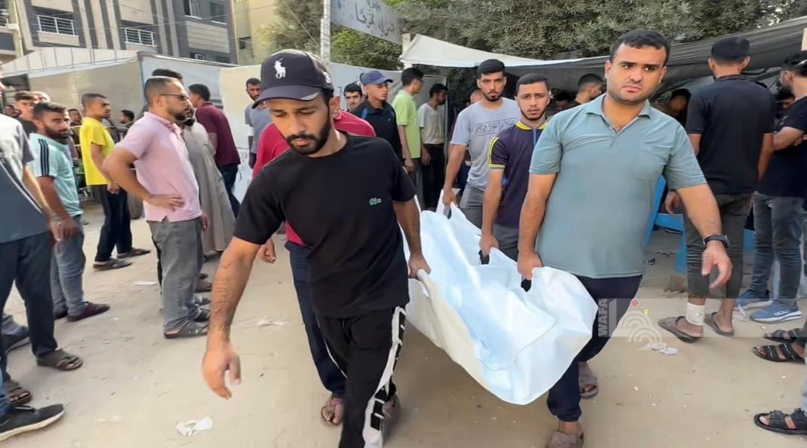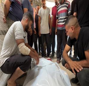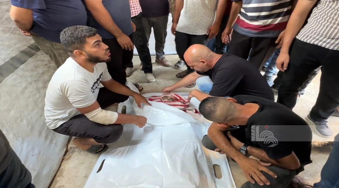 غزة - وداع وتشييع عدد من الشهداء في مستشفى العودة بمخيم النصيرات وسط قطاع غزة