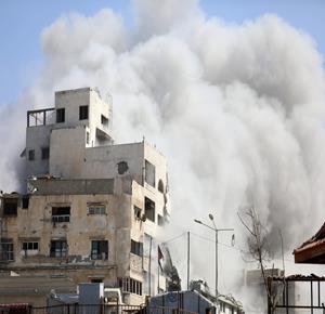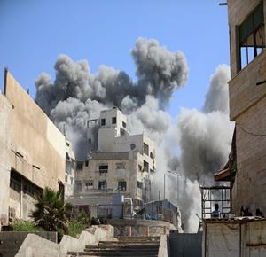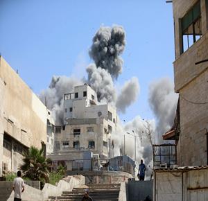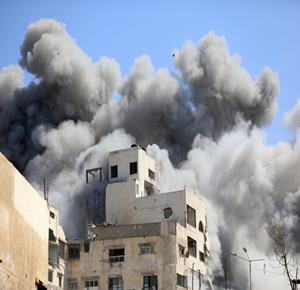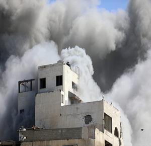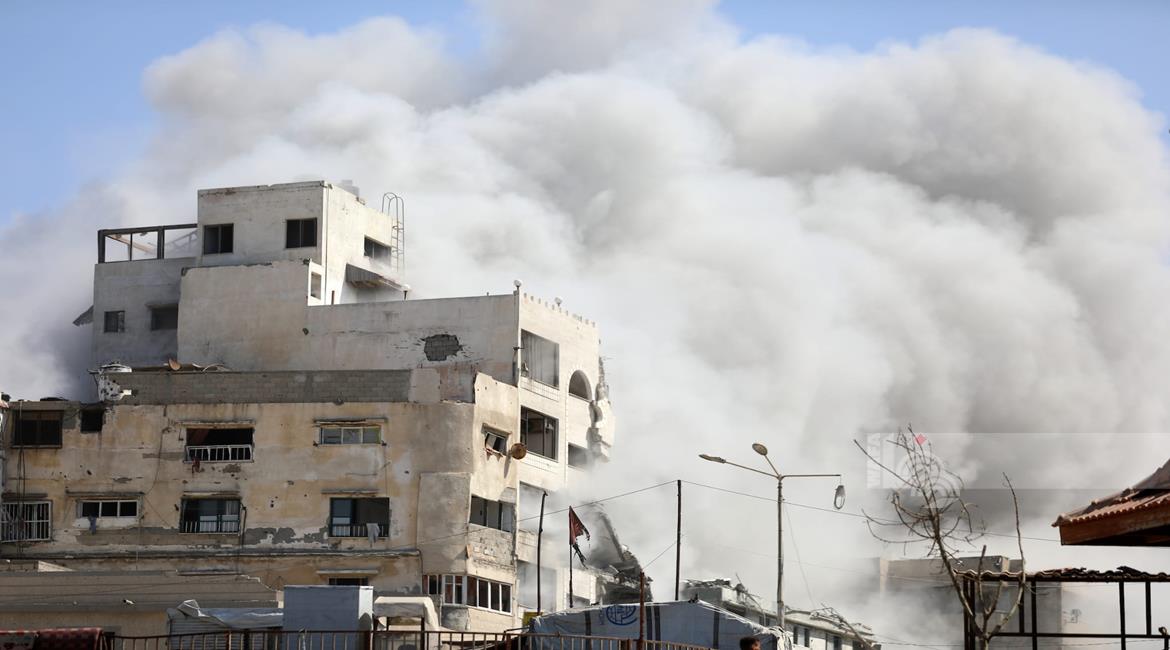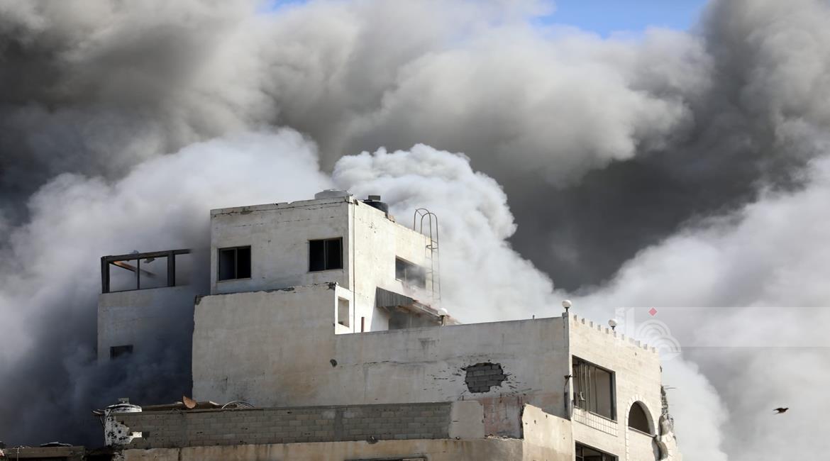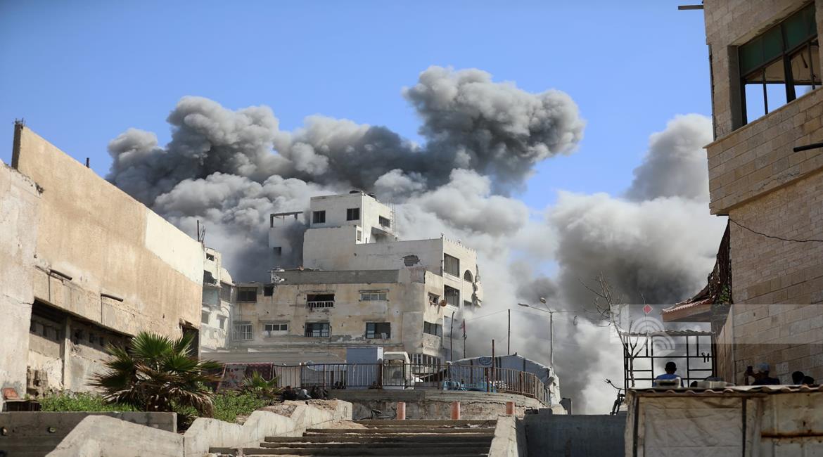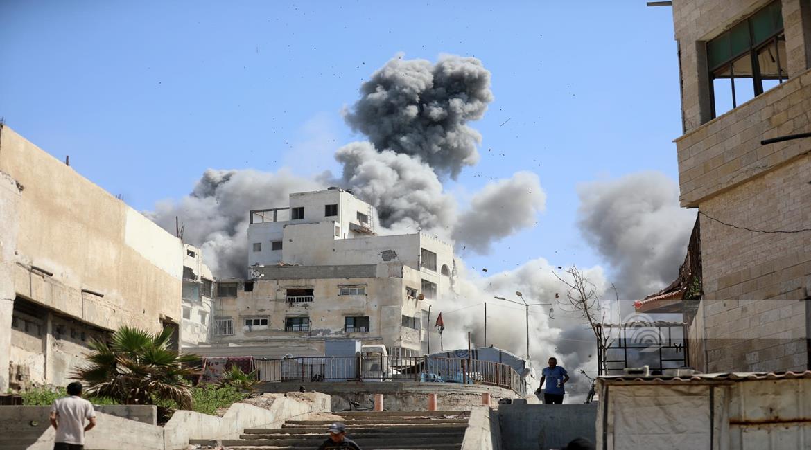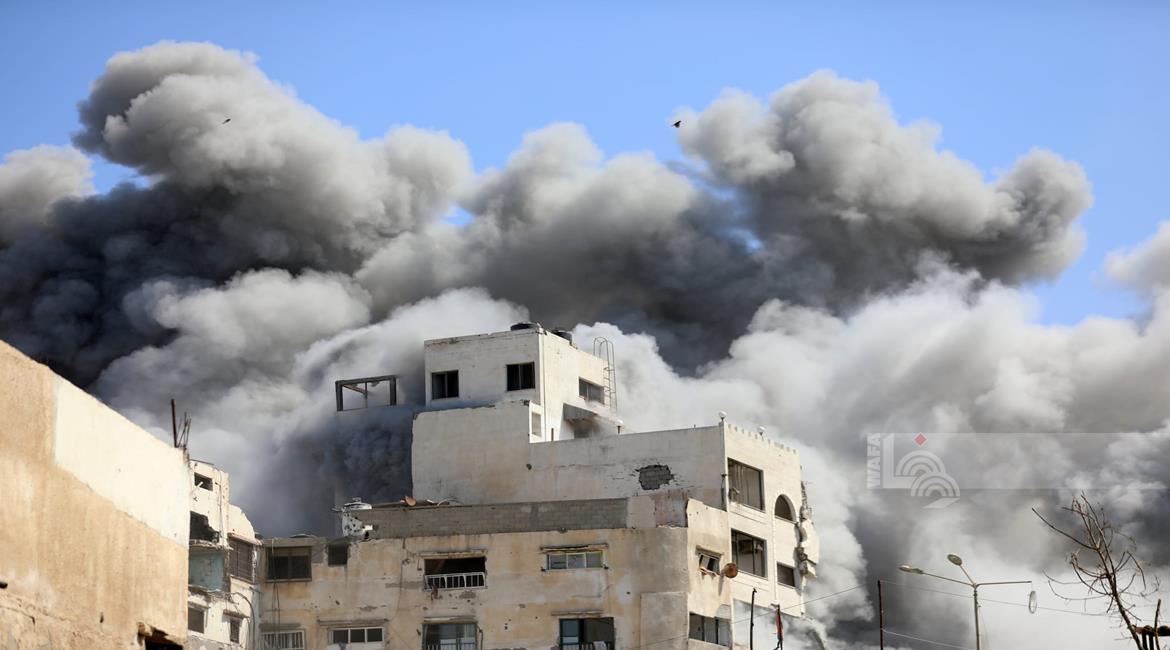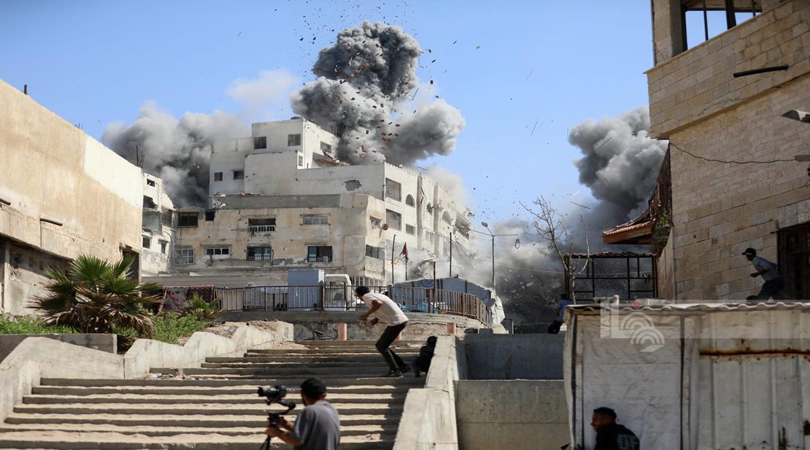 غزة - طائرات الاحتلال الاسرائيلية تقصف مبنى سكني في شارع أبو حصيرة غرب مدينة غزة