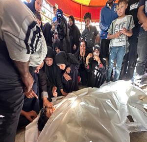 غزة - وداع وتشييع شهداء في مستشفى ناصر بخان يونس جنوب قطاع غزة