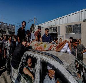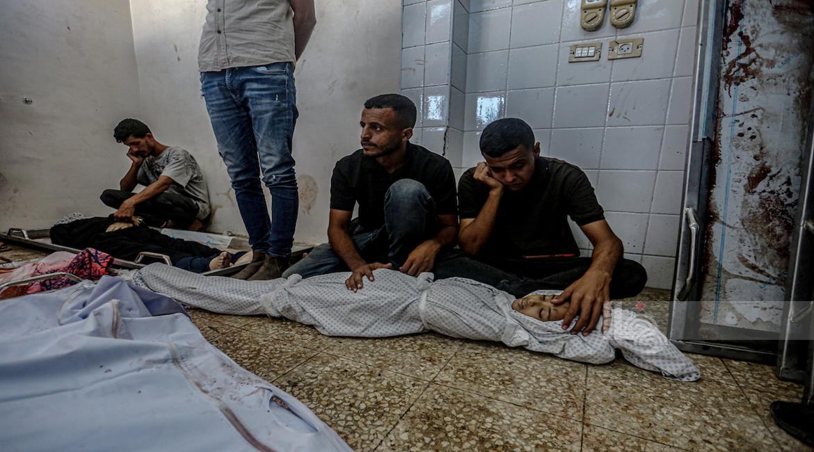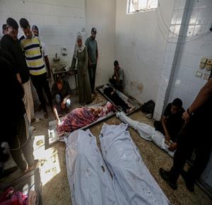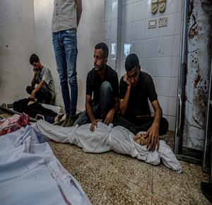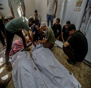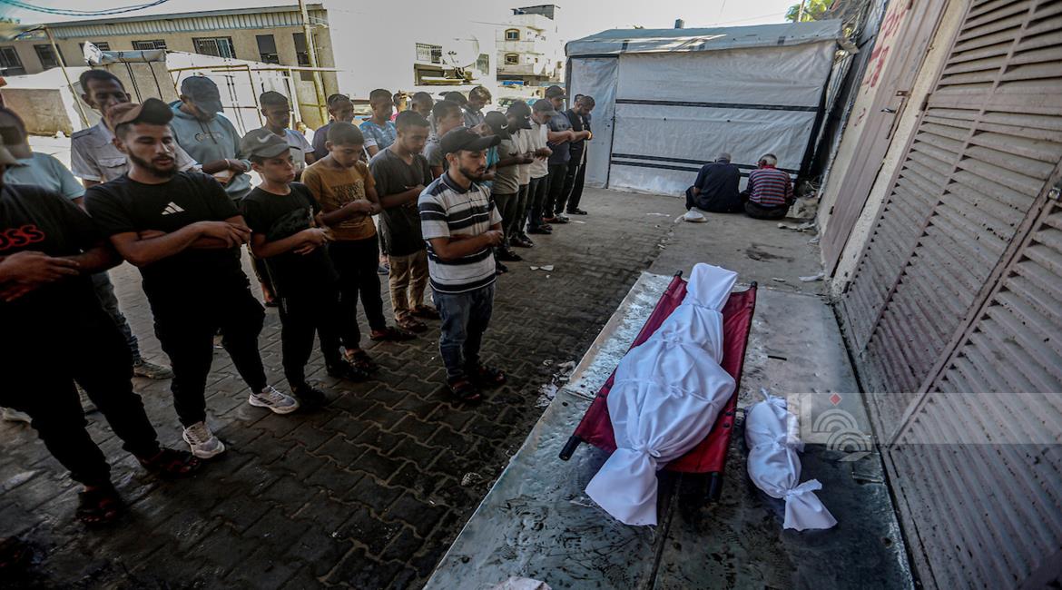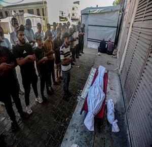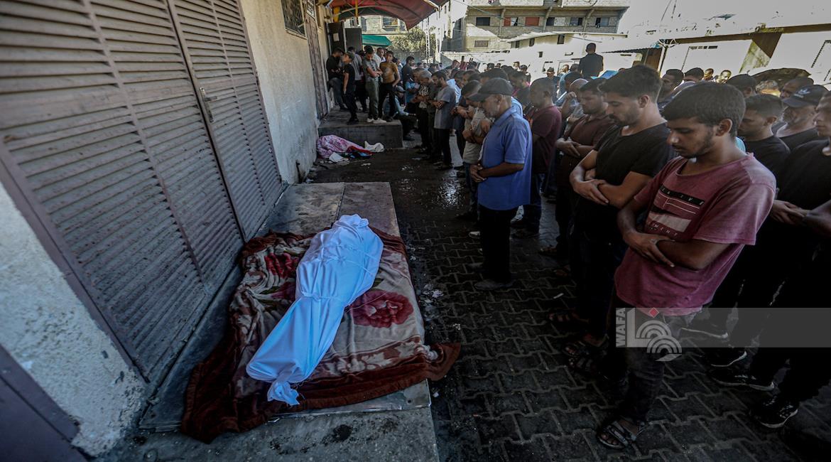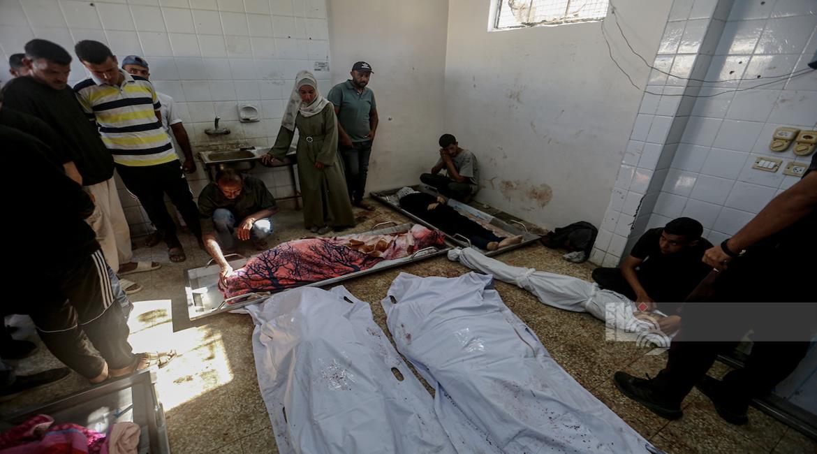 غزة - مواطنون يشيعون عدد من الشهداء من بينهم أطفال في مستشفى شهداء الاقصى في دير البلح