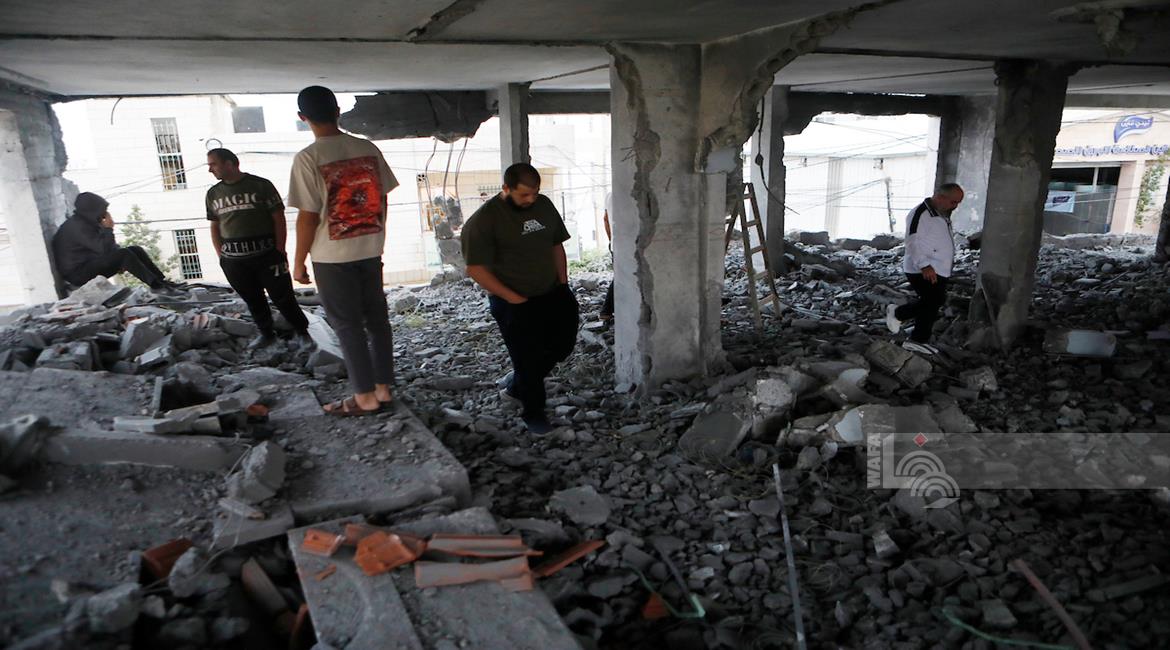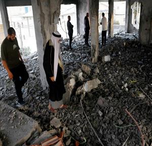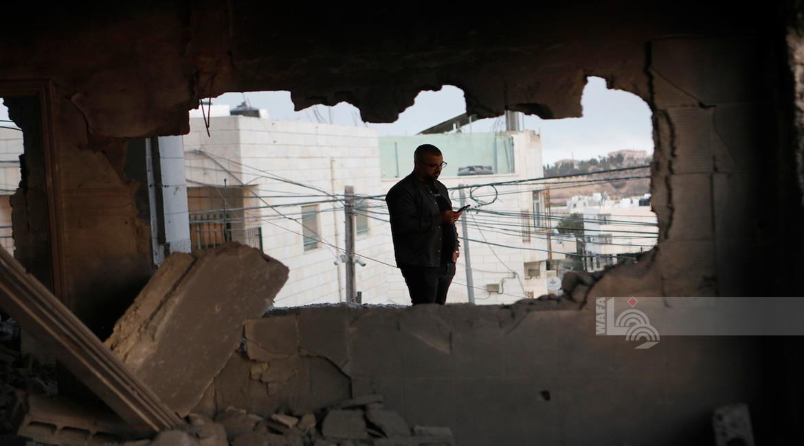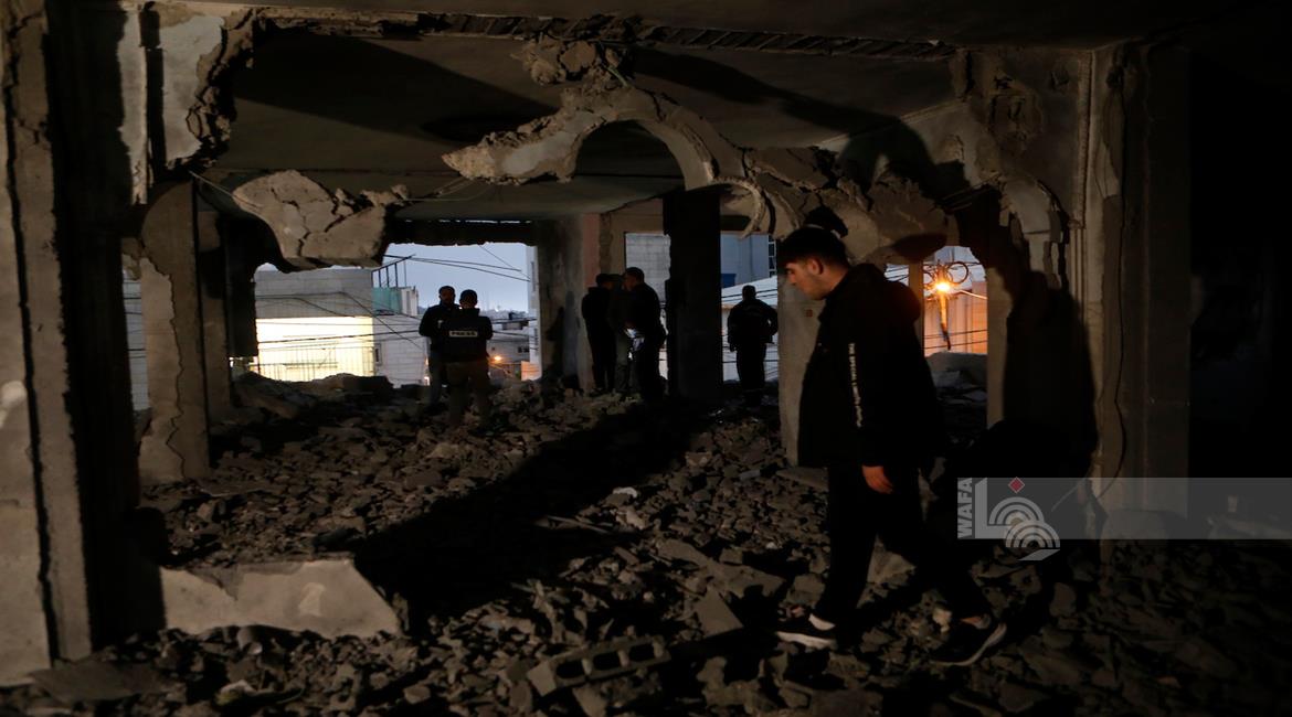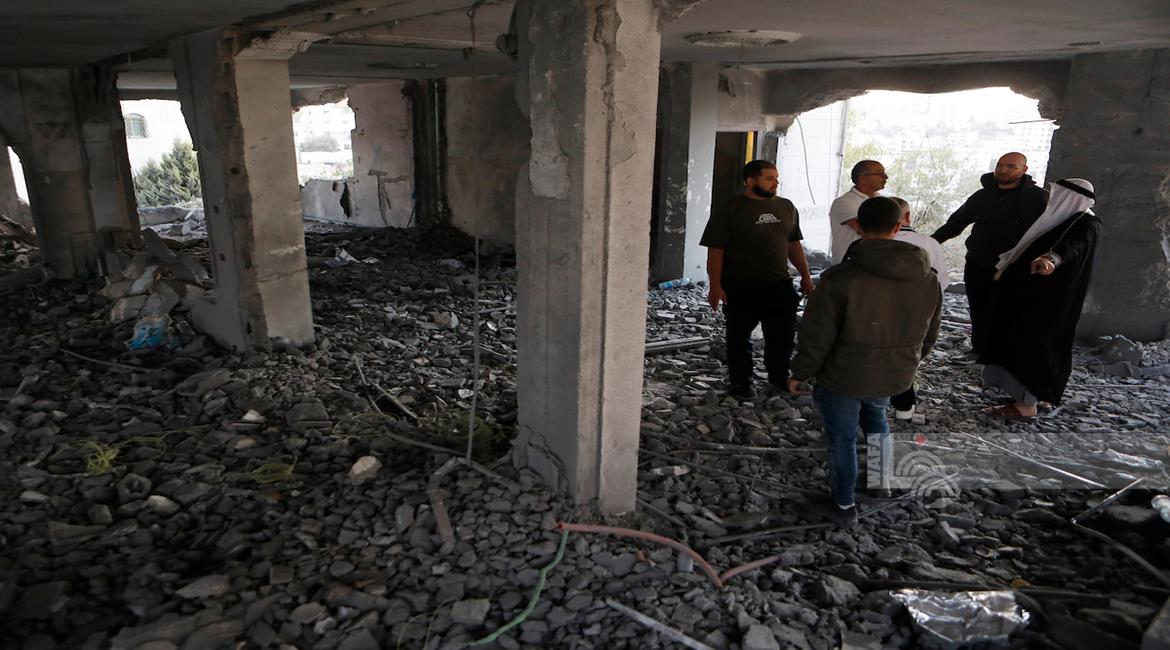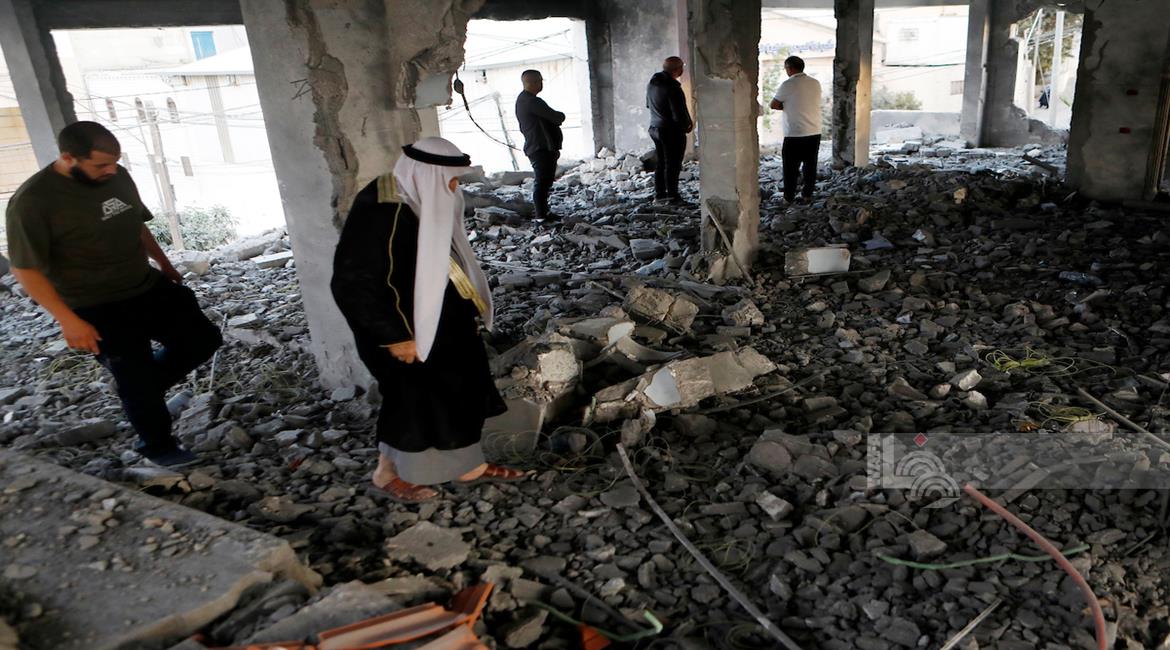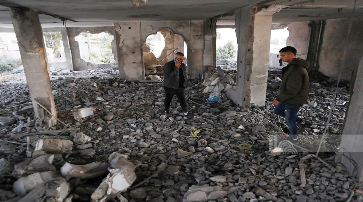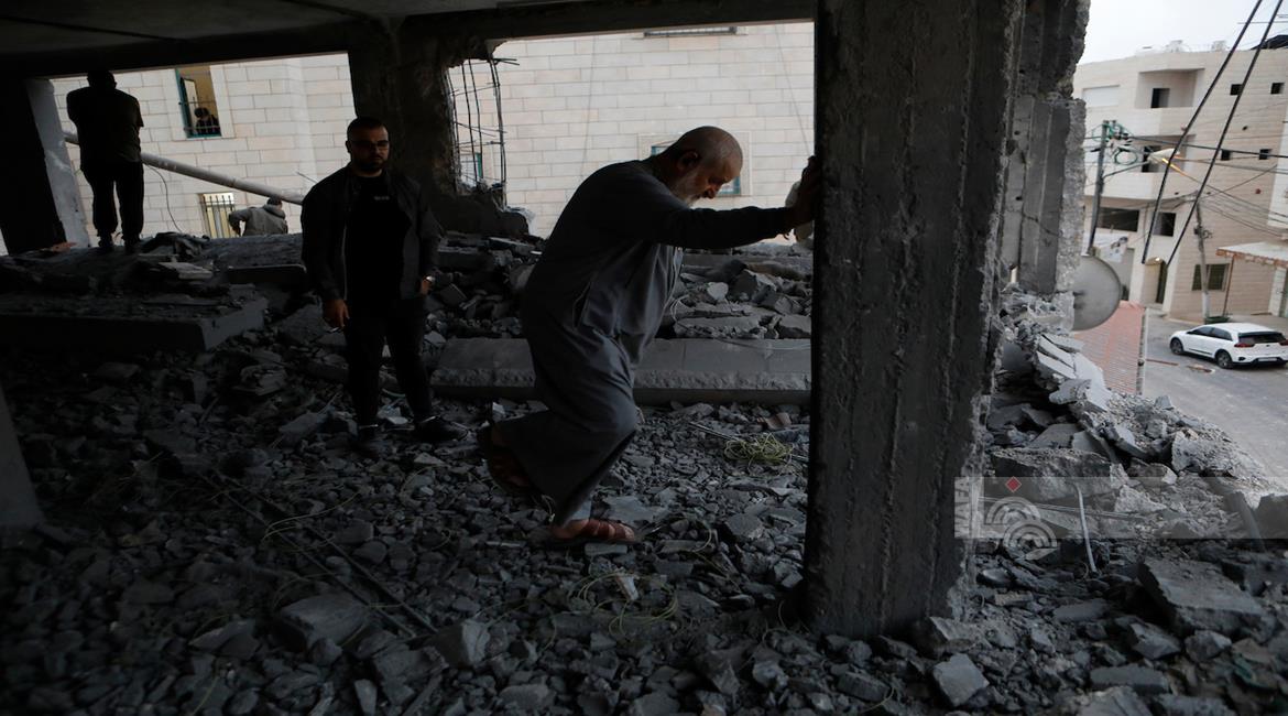 الخليل - مواطنون يتفقدون الدمار الذي لحق بمنزل الأسير أحمد الهيموني في مدينة الخليل عقب تفجيره من قبل قوات الاحتلال صباح اليوم