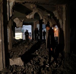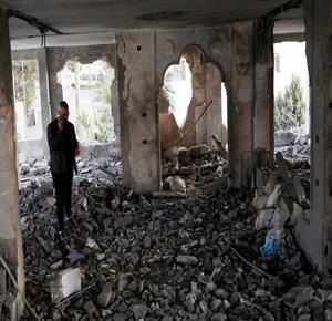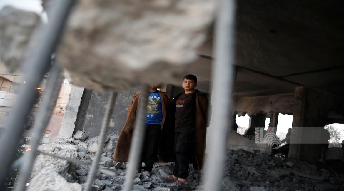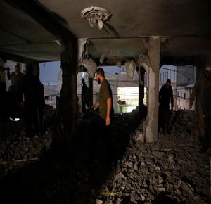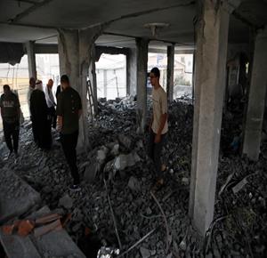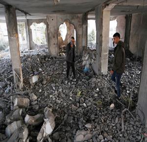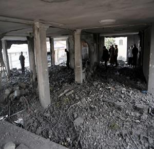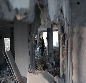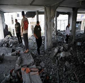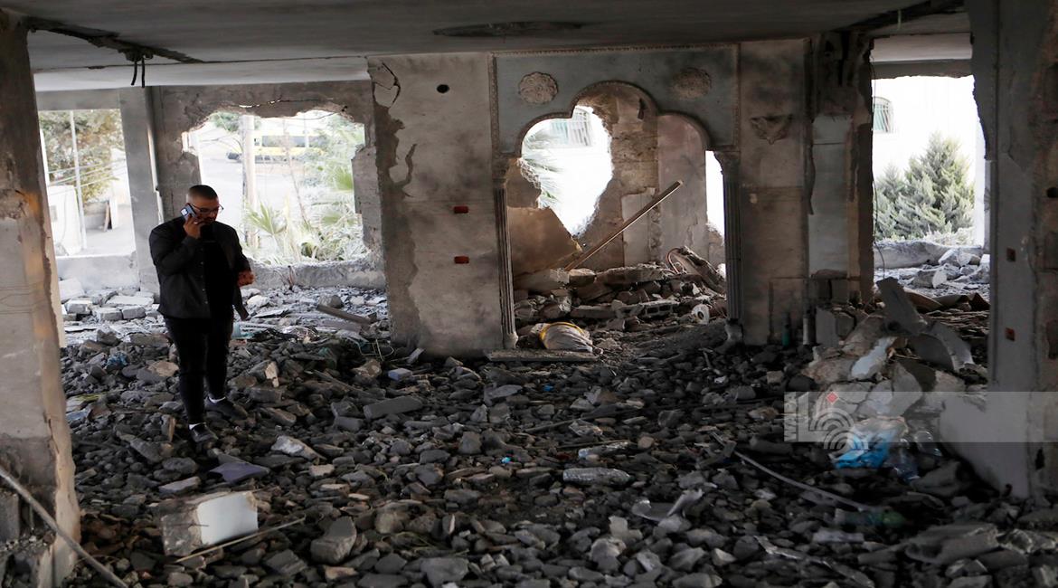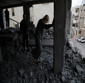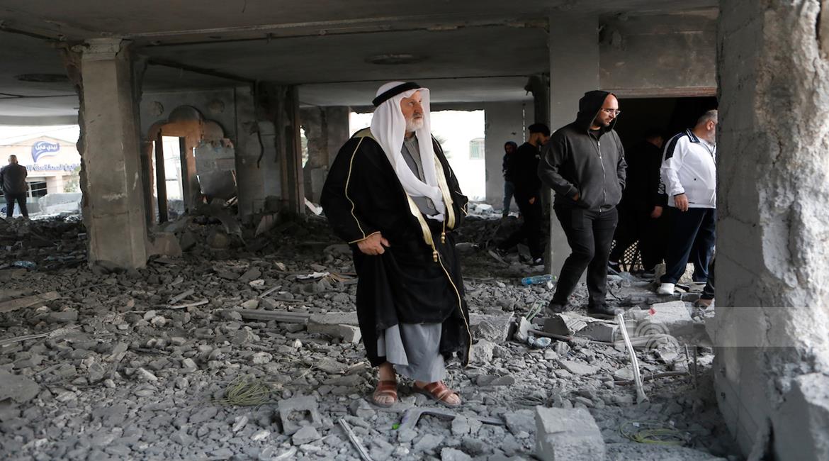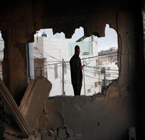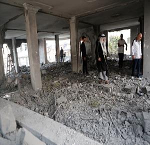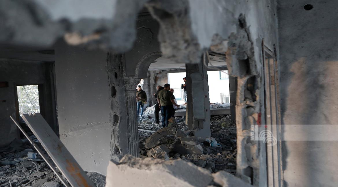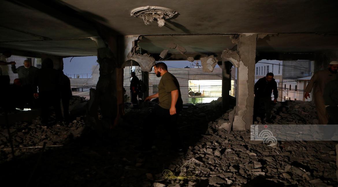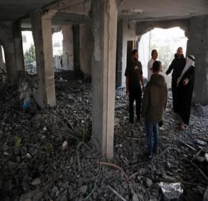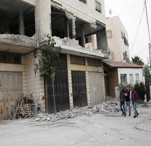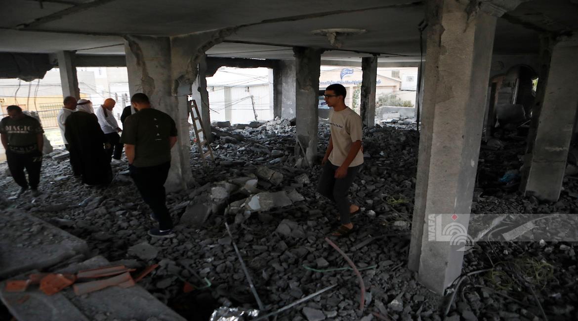الخليل - مواطنون يتفقدون الدمار الذي لحق بمنزل الأسير أحمد الهيموني في مدينة الخليل عقب تفجيره من قبل قوات الاحتلال صباح اليوم