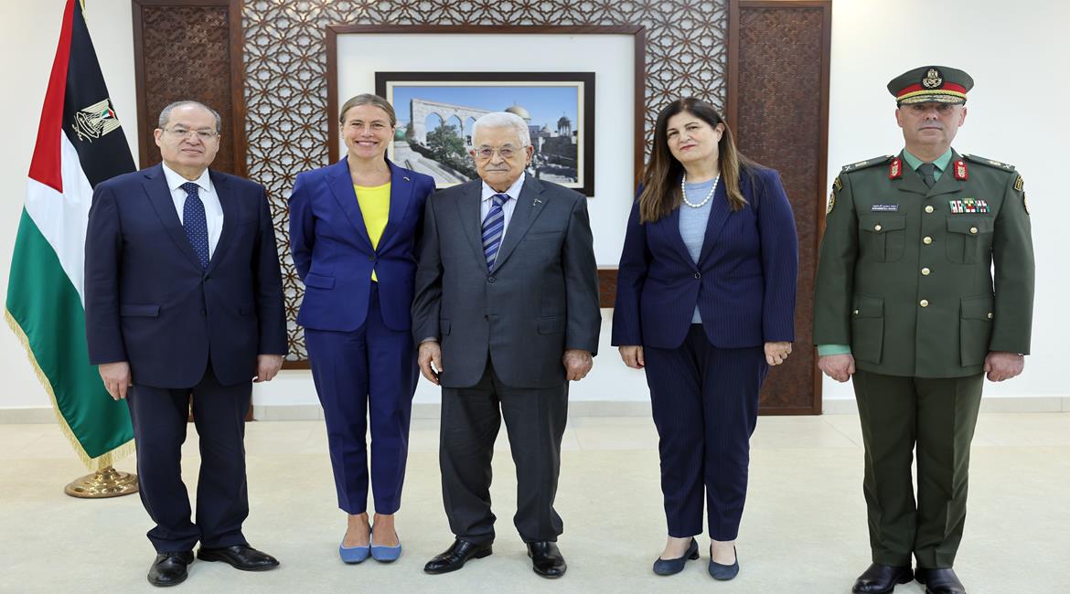 رام الله - الرئيس محمود عباس، يتقبل أوراق اعتماد القنصل العام السويدي في القدس صوفي بيكر