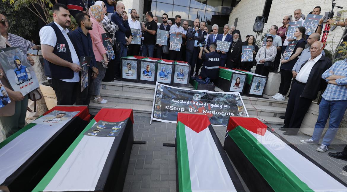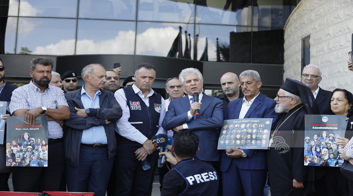 رام الله - نقابة الصحفيين تنظم فعالية مركزية في الذكرى السنوية لحرب الإبادة بحق شعبنا وتنديداً بالجرائم الاسرائيلية بحق الصحافيين والمؤسسات الإعلامية