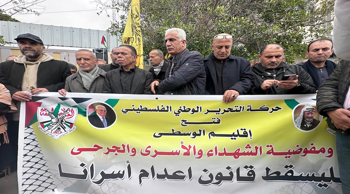 مسيرة منددة بإقرار الهيئة العامة للكنيست الإسرائيلية لقانون الإعدام بحق الاسرى الفلسطينيين،في مدينة دير البلح وسط قطاع غزة