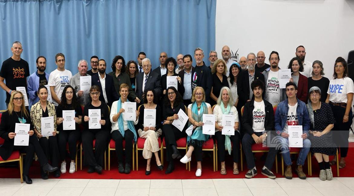 رام الله - الرئيس محمود عباس، يستقبل وفدا من تحالف السلام الفلسطيني الإسرائيلي