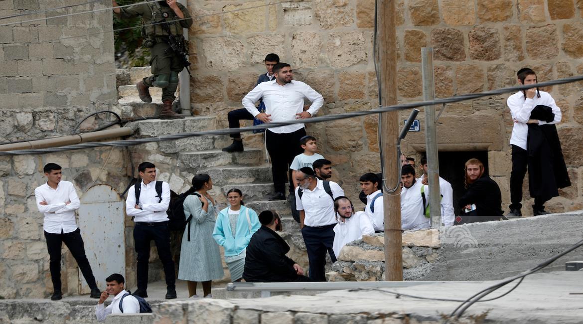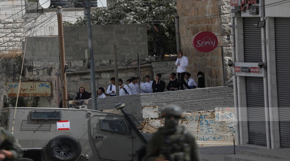 الخليل - مستعمرون بحماية جيش الاحتلال ينظمون جولة استفزازية في مدينة الخليل