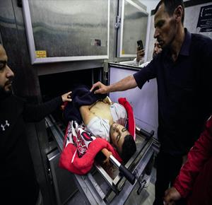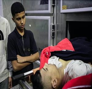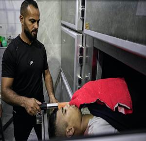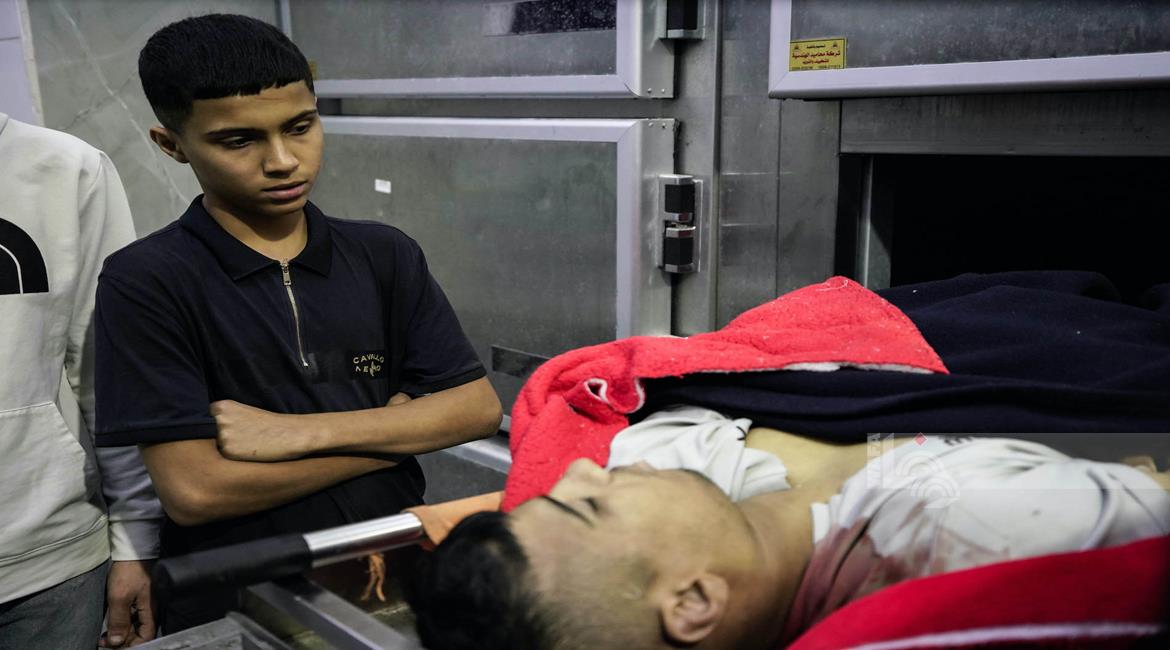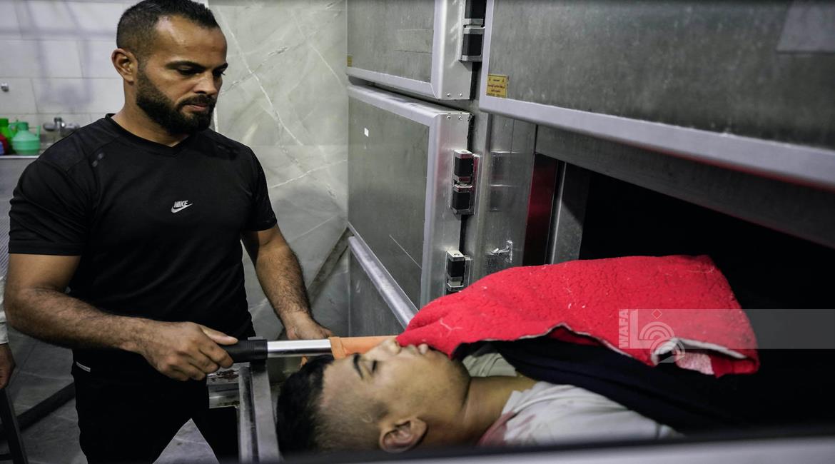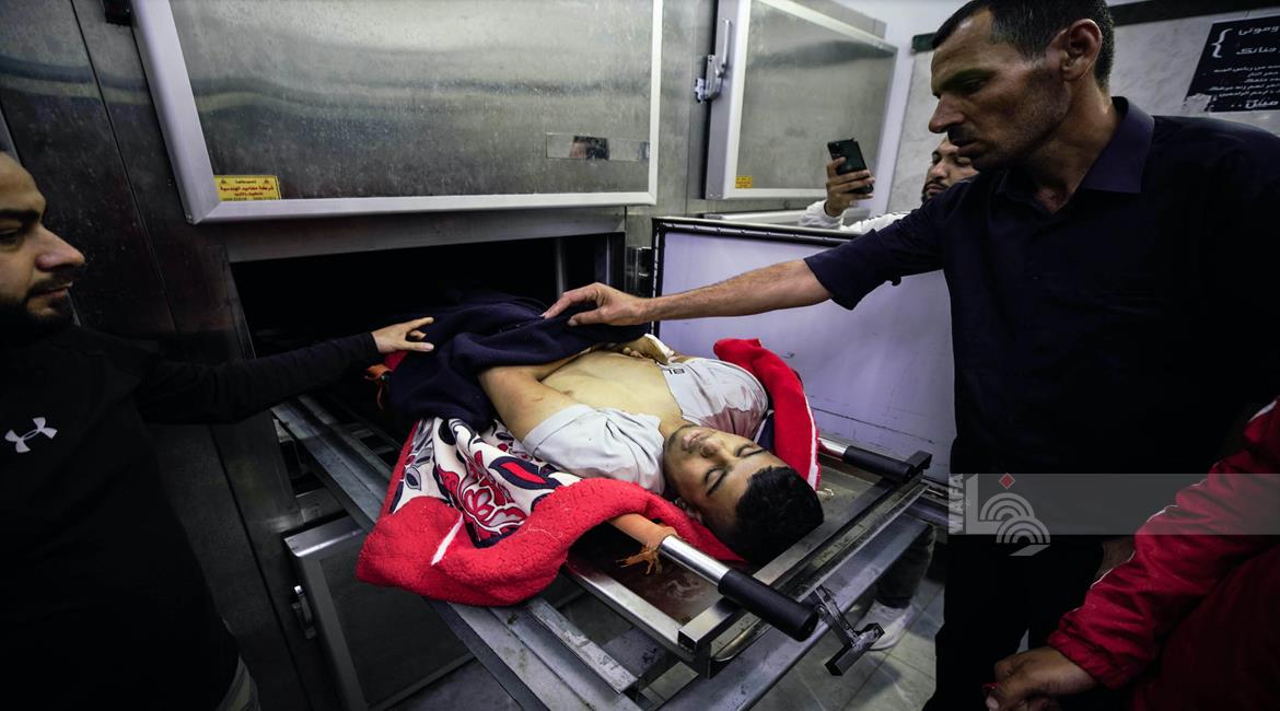 مواطنون يشيعون عدد من الشهداء من بينهم أطفال في مستشفى شهداء الاقصى في دير البلح