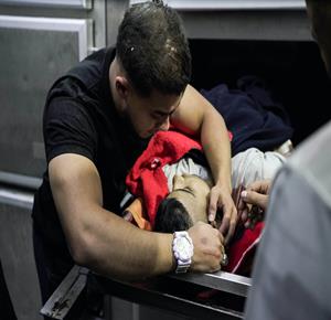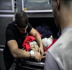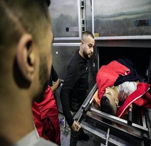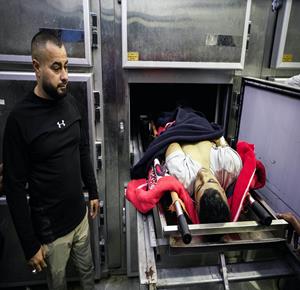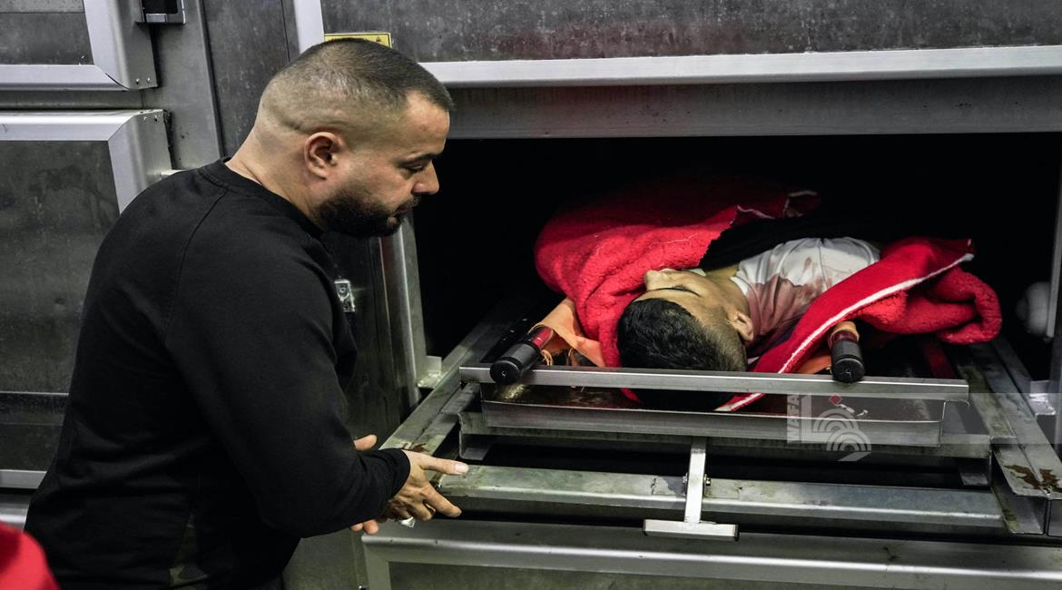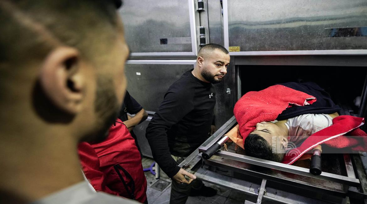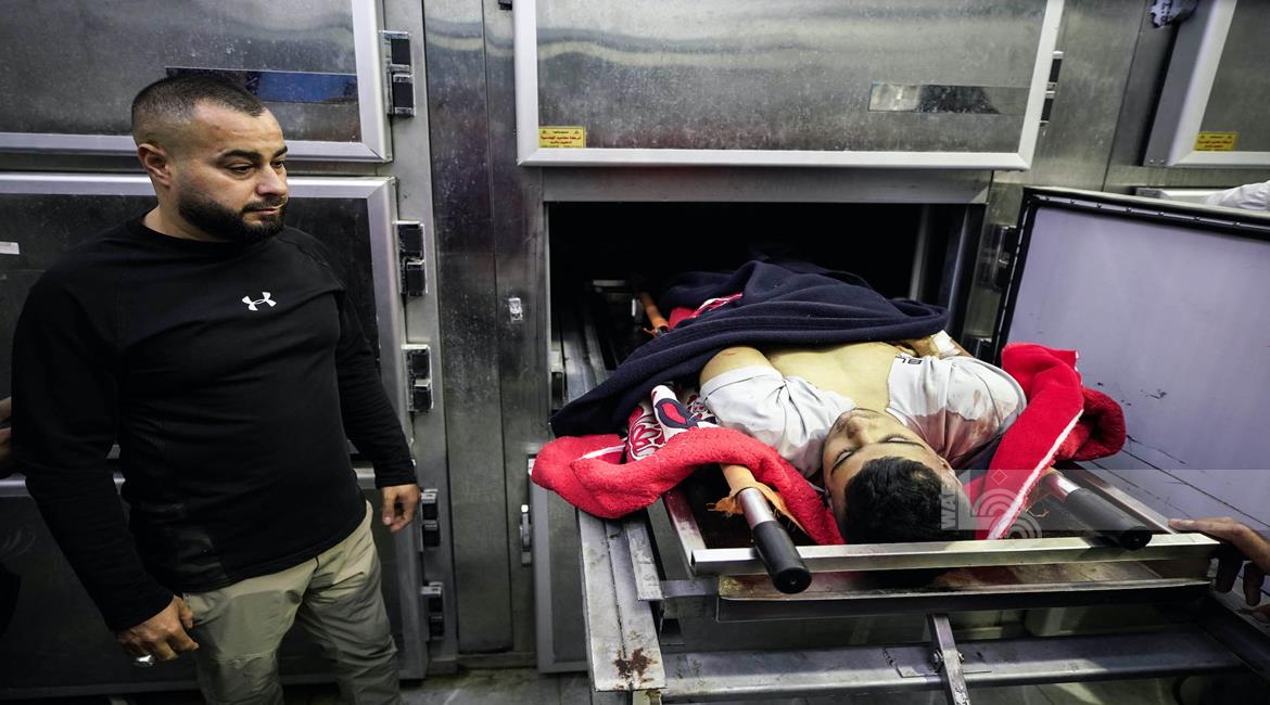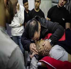 جنين - وداع الشهيد الشاب محمد عدنان يوسف سلامة (25 عاما) في مستشفى الدكتور خليل سليمان الحكومي