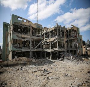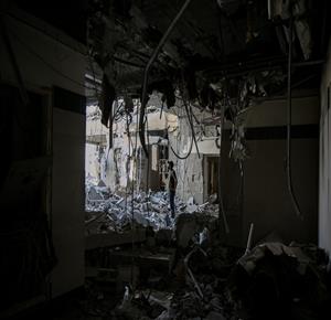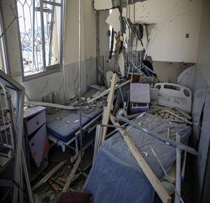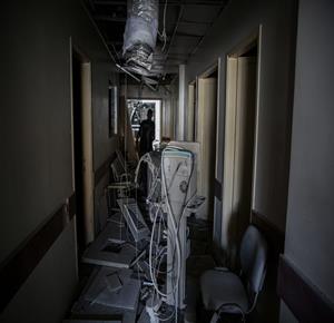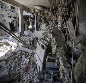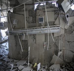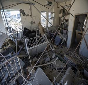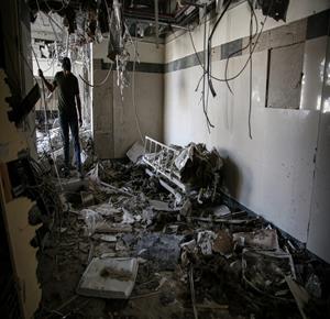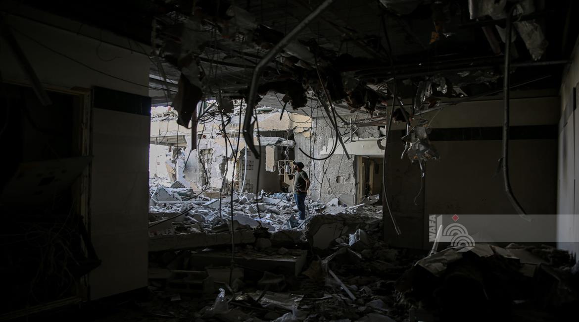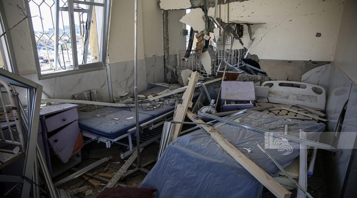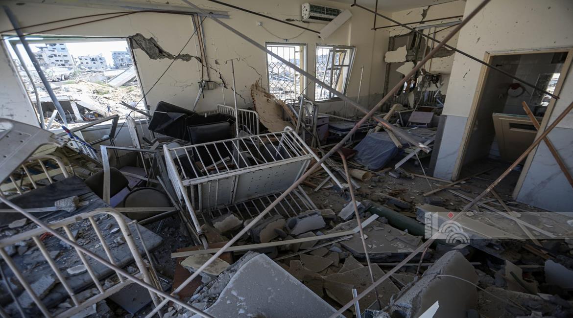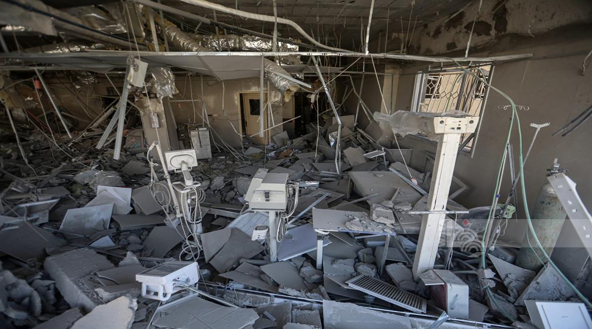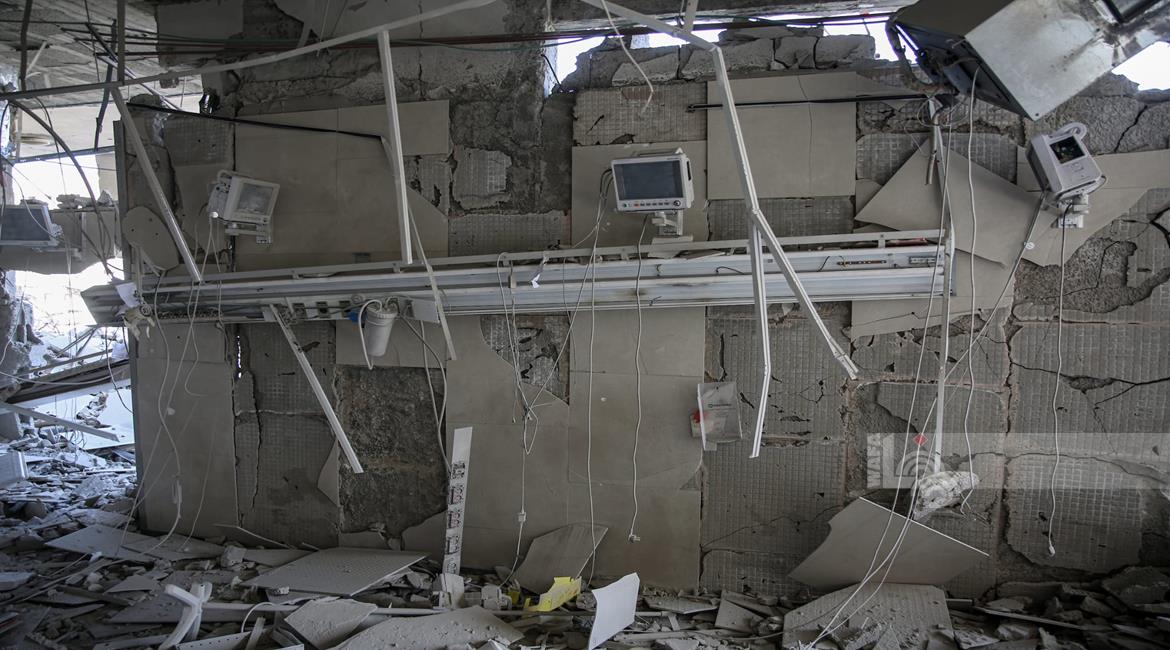 غزة - آثار الدمار الذي خلفه الاحتلال في مستشفى الرنتيسي بحي النصر