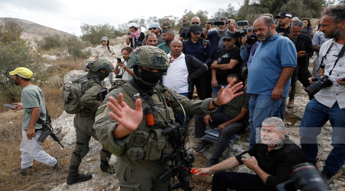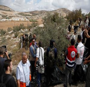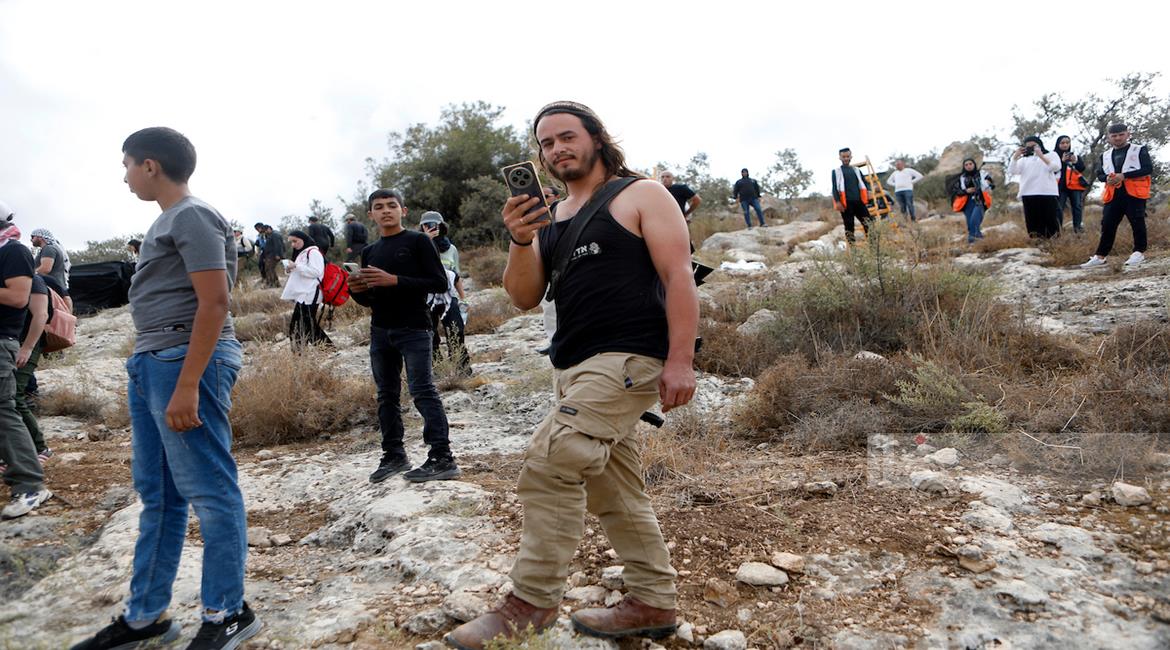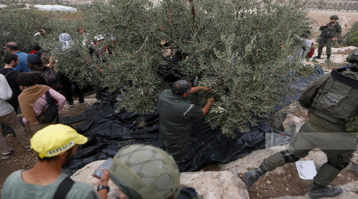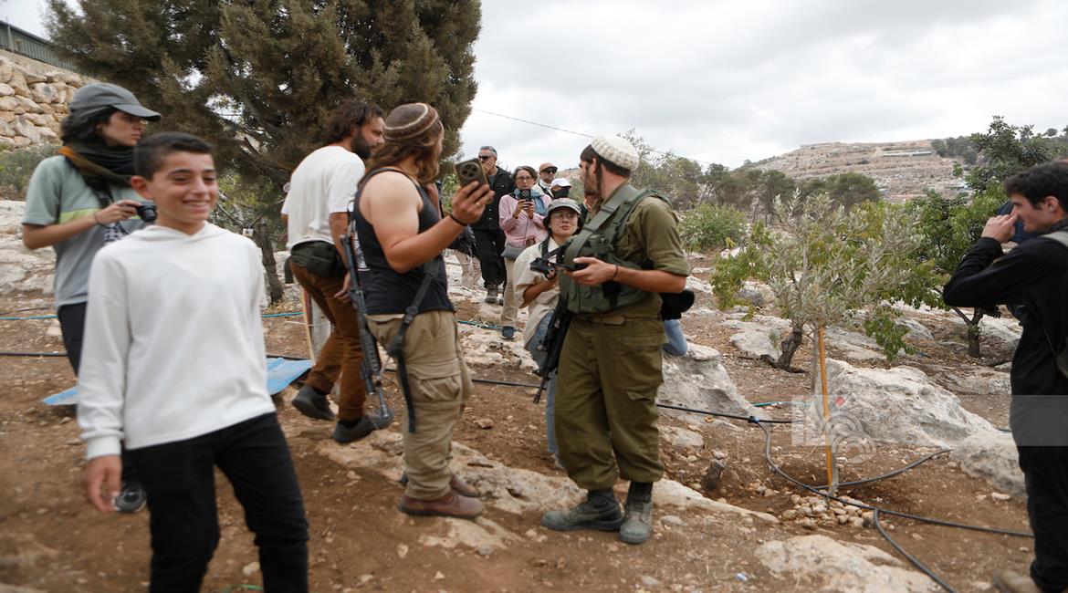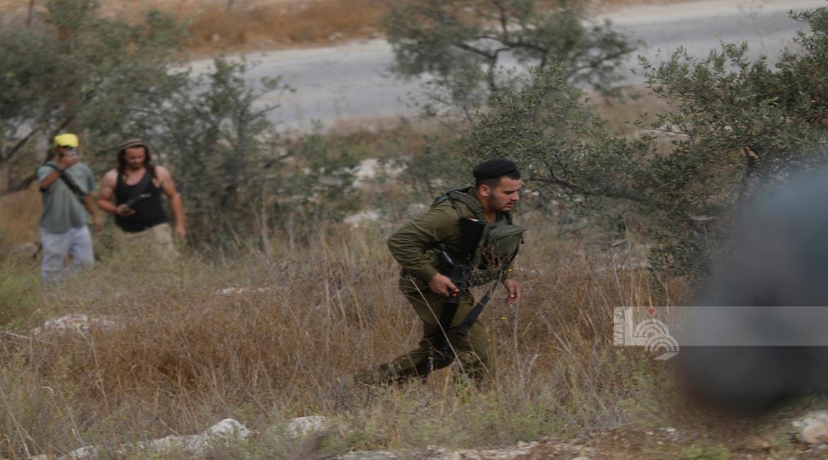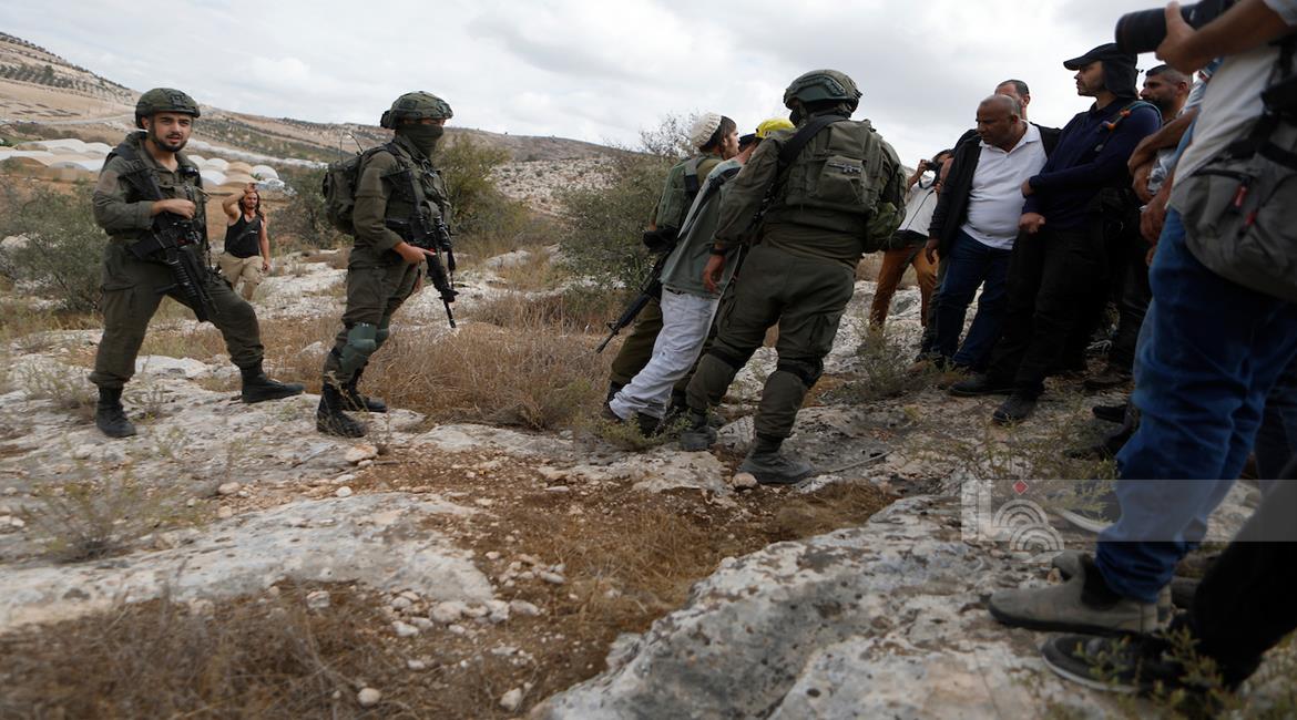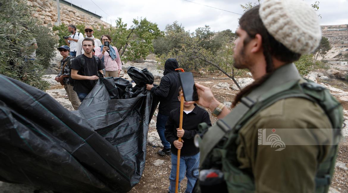 الخليل - مستعمرون بحماية قوات الاحتلال يهاجمون مجموعة من المواطنين والمتطوعين خلال قطفهم ثمار الزيتون في خربة سوبا غرب الخليل