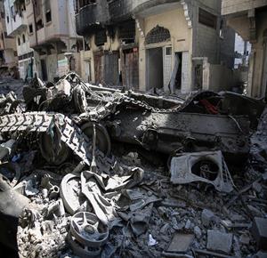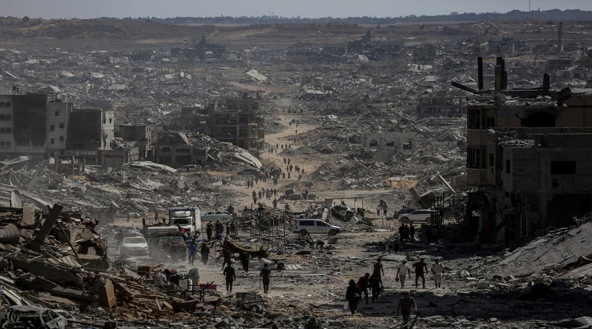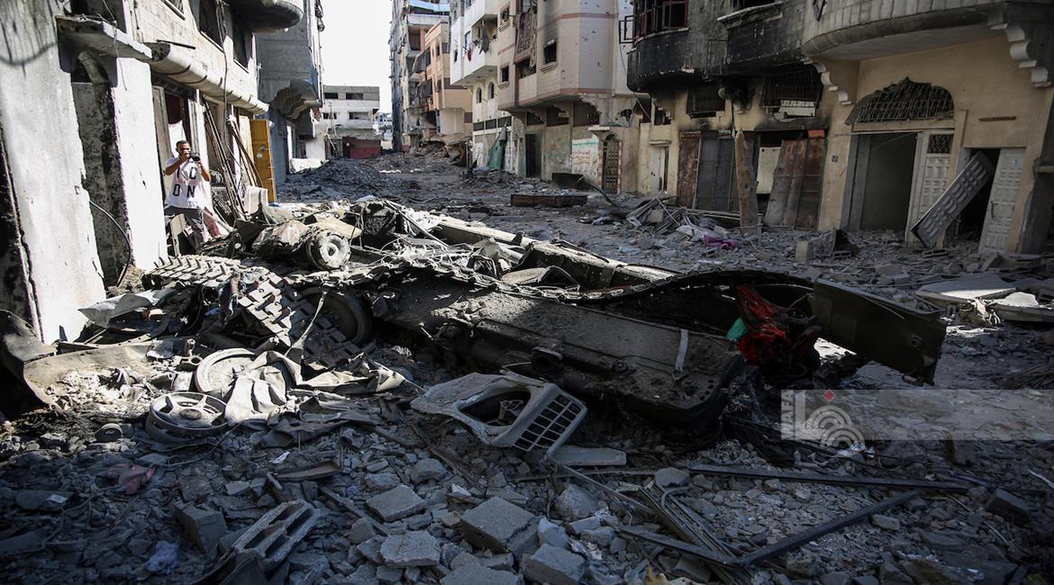 مواطنون يعودون الى حي النصر بعد انسحاب قوات الاحتلال الاسرائيلي وتدميره للمنطقة