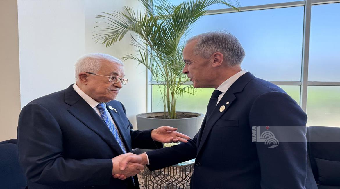 الرئيس محمود عباس أثناء لقائه الرئيس الفرنسي إيمانويل ماكرون و رئيس الوزراء البريطاني كير ستارمر على هامش قمة شرم الشيخ