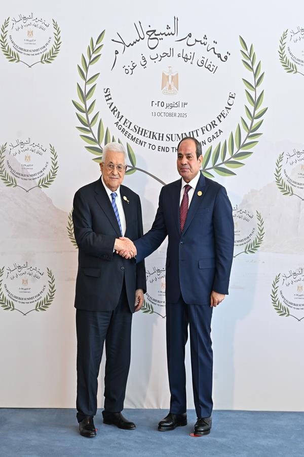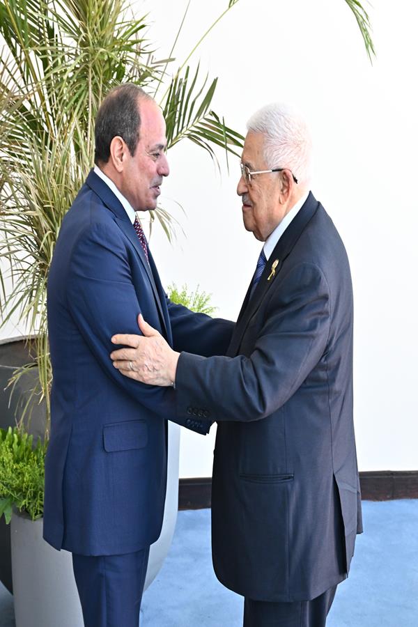 شرم الشيخ - الرئيس محمود عباس يلتقي الرئيس المصري عبد الفتاح السيسي، قبيل انطلاق "قمة السلام" في شرم الشيخ