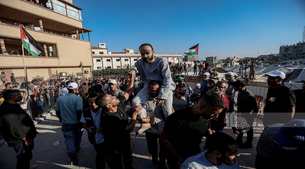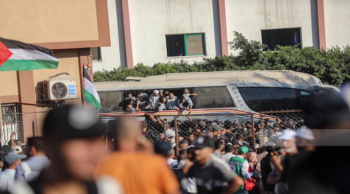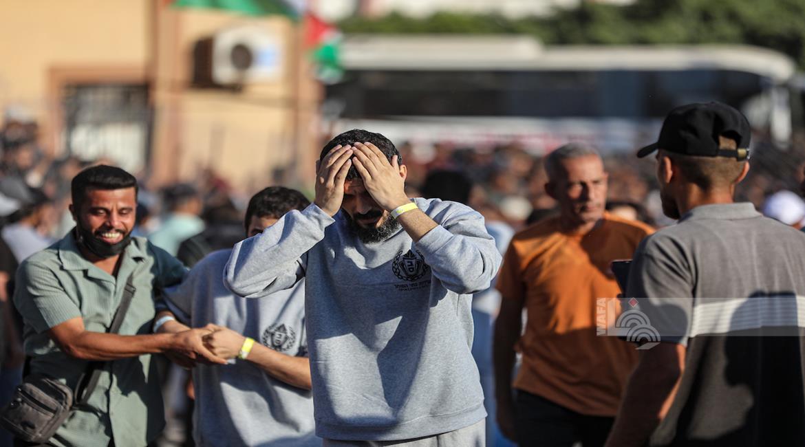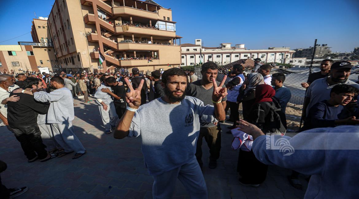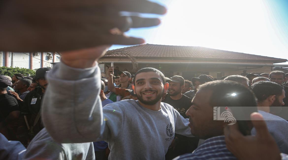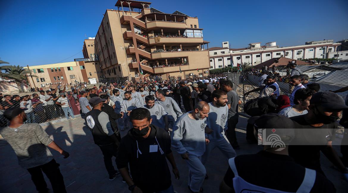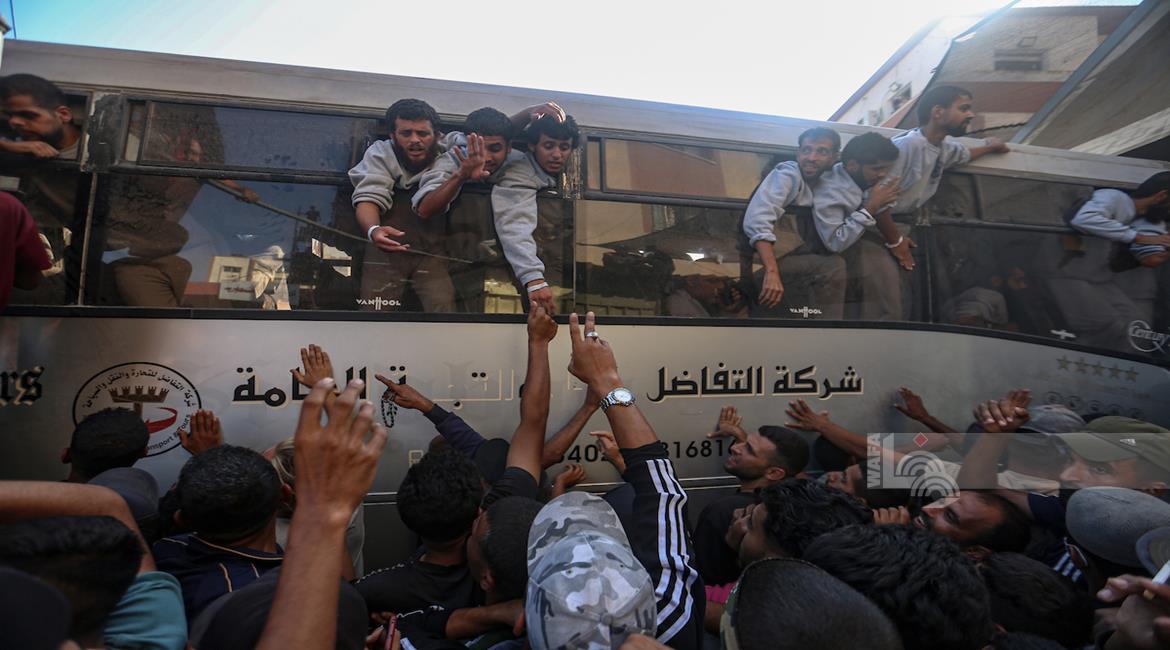غزة - آلاف المواطنين يستقبلون الأسرى المحررين من سجون الاحتلال الإسرائيلي في خان يونس جنوب قطاع غزة