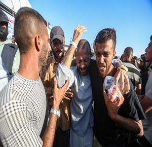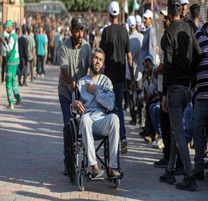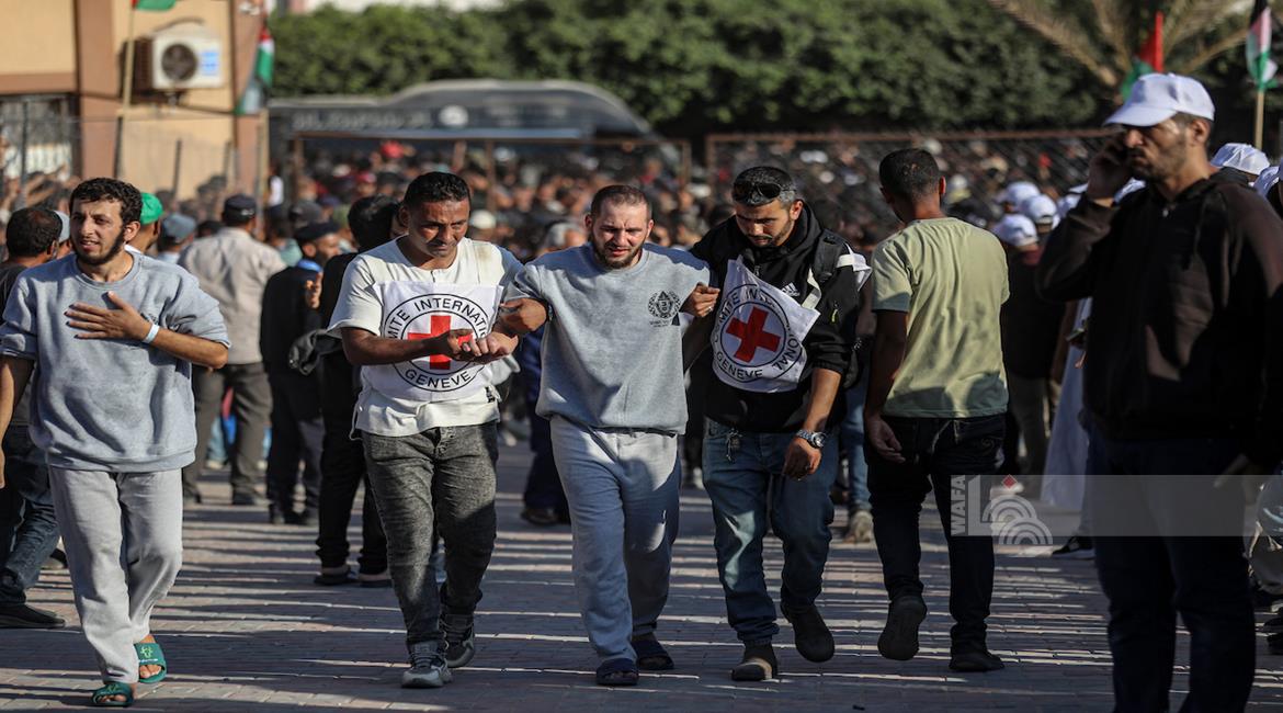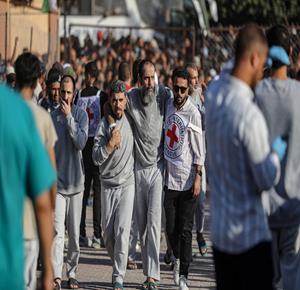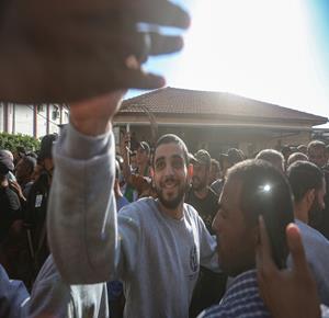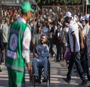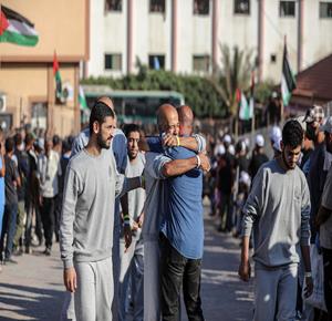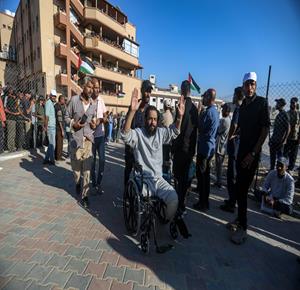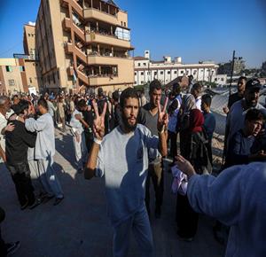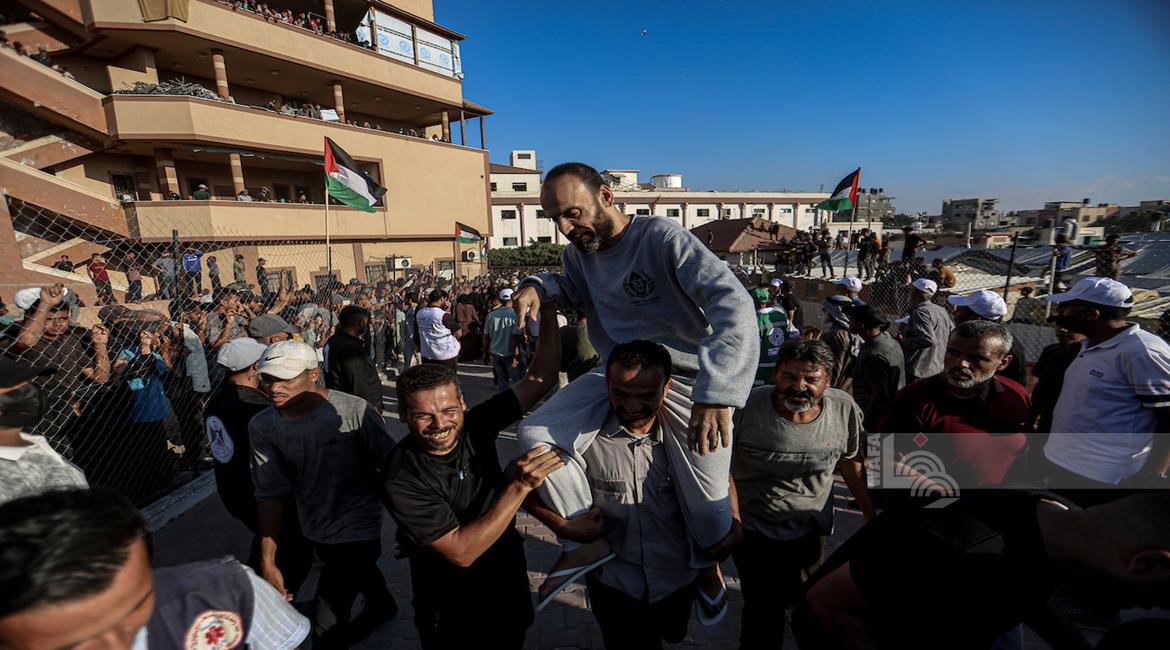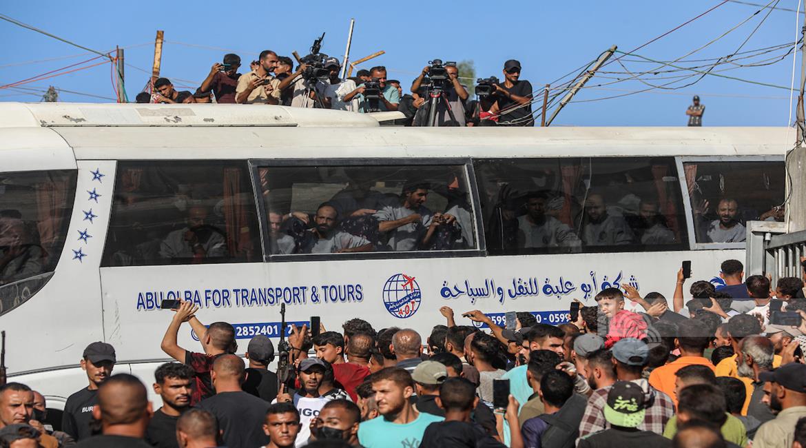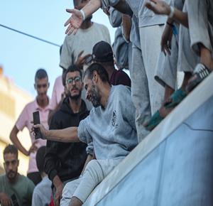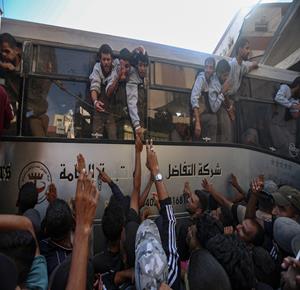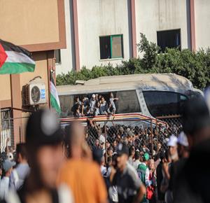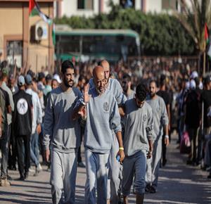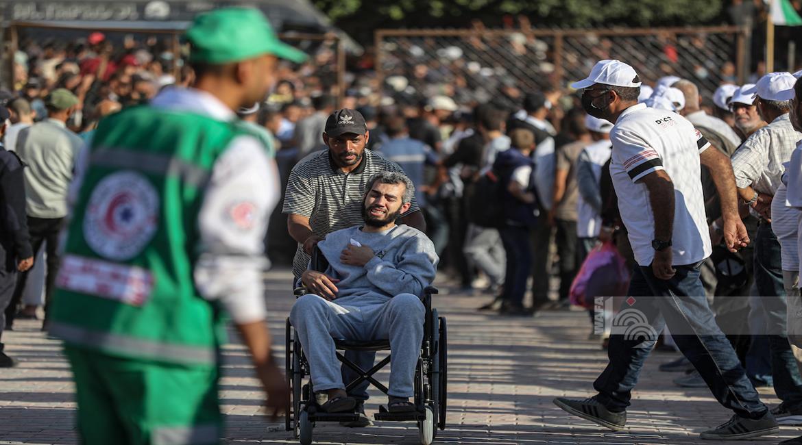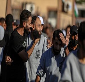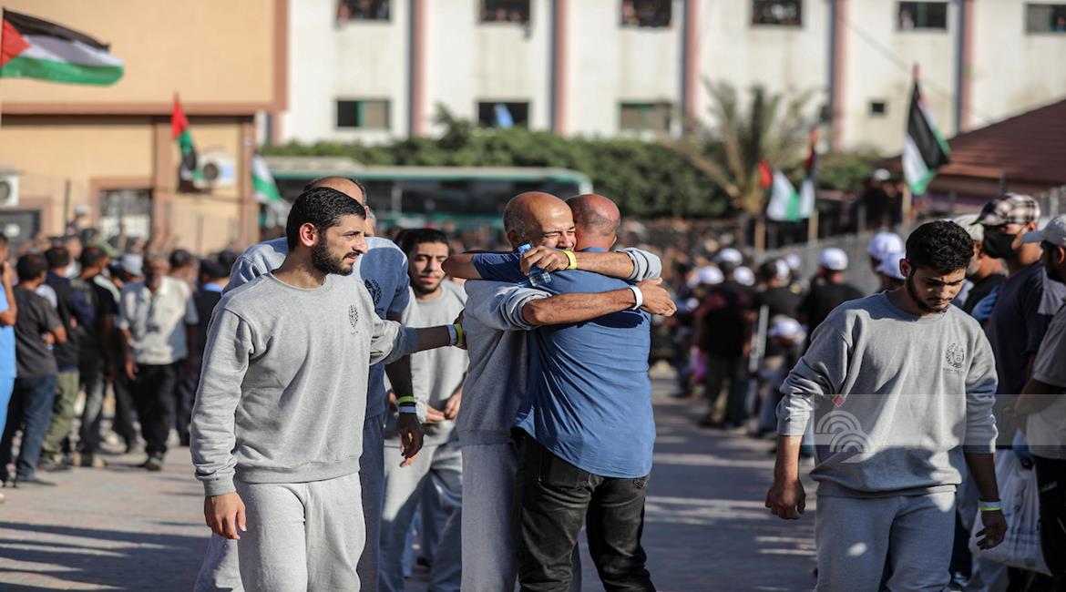 غزة - آلاف المواطنين يستقبلون الأسرى المحررين من سجون الاحتلال الإسرائيلي في خان يونس جنوب قطاع غزة