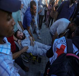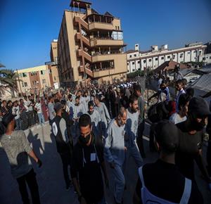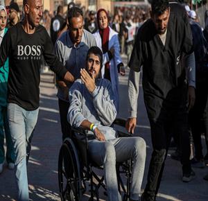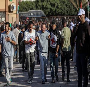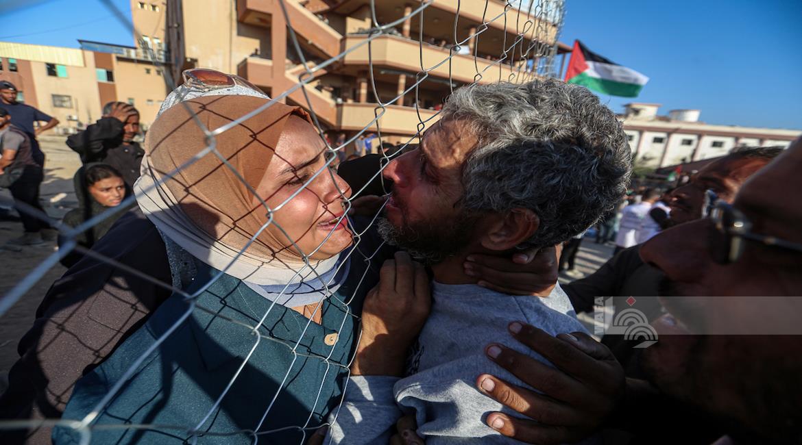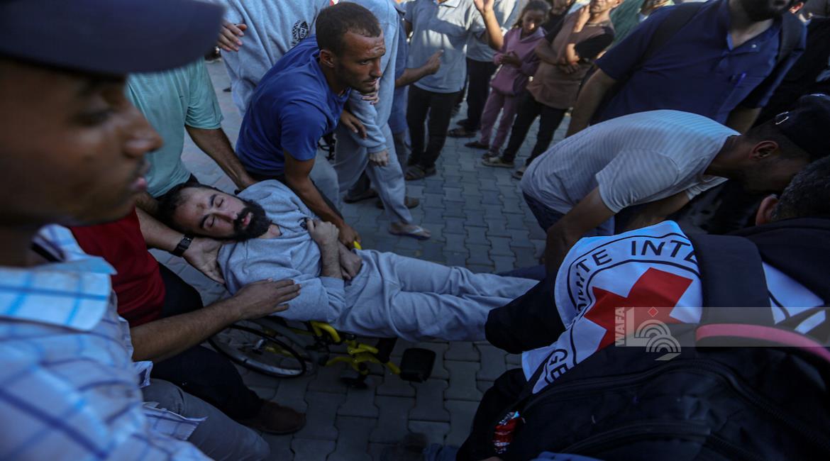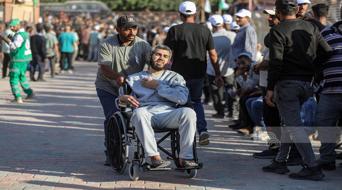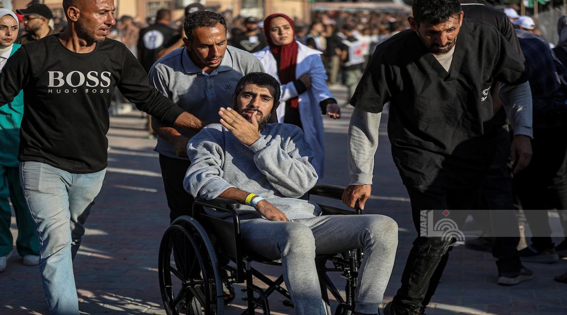 الأسير المحرر علي أبو علي يتلقى الرعاية الطبية في مستشفى العودة بالنصيرات وسط غزة بعد تحريره