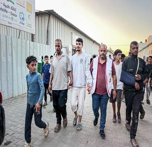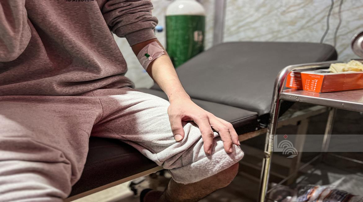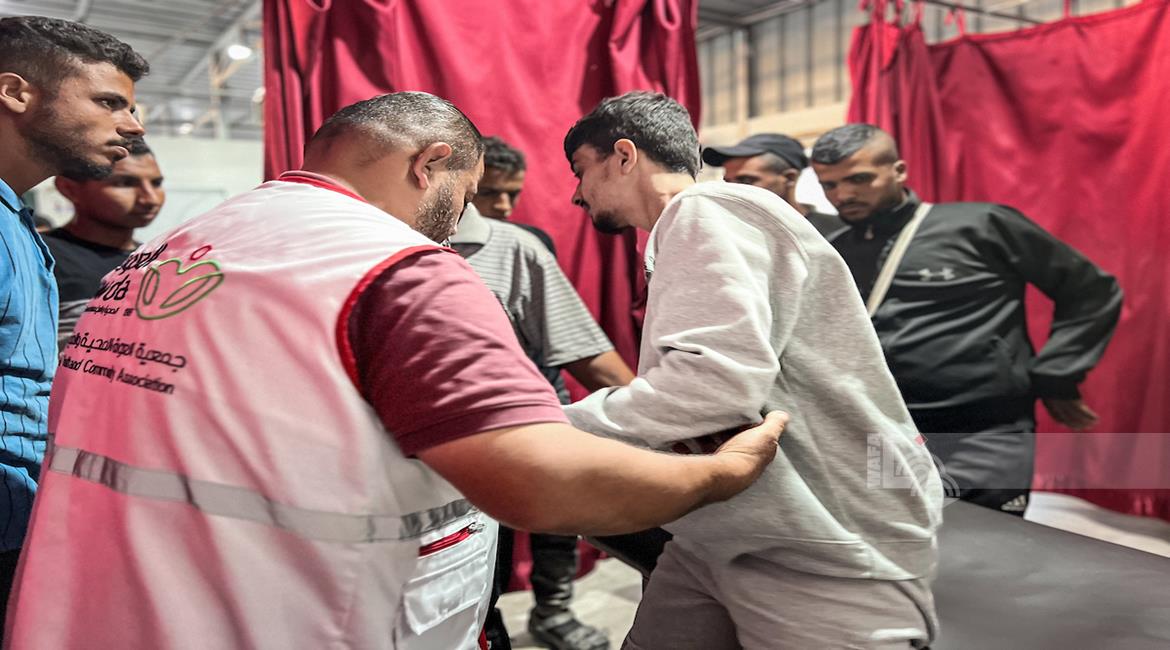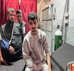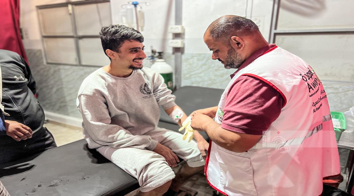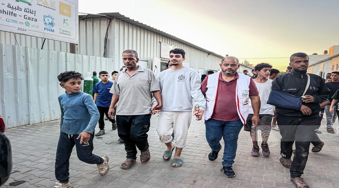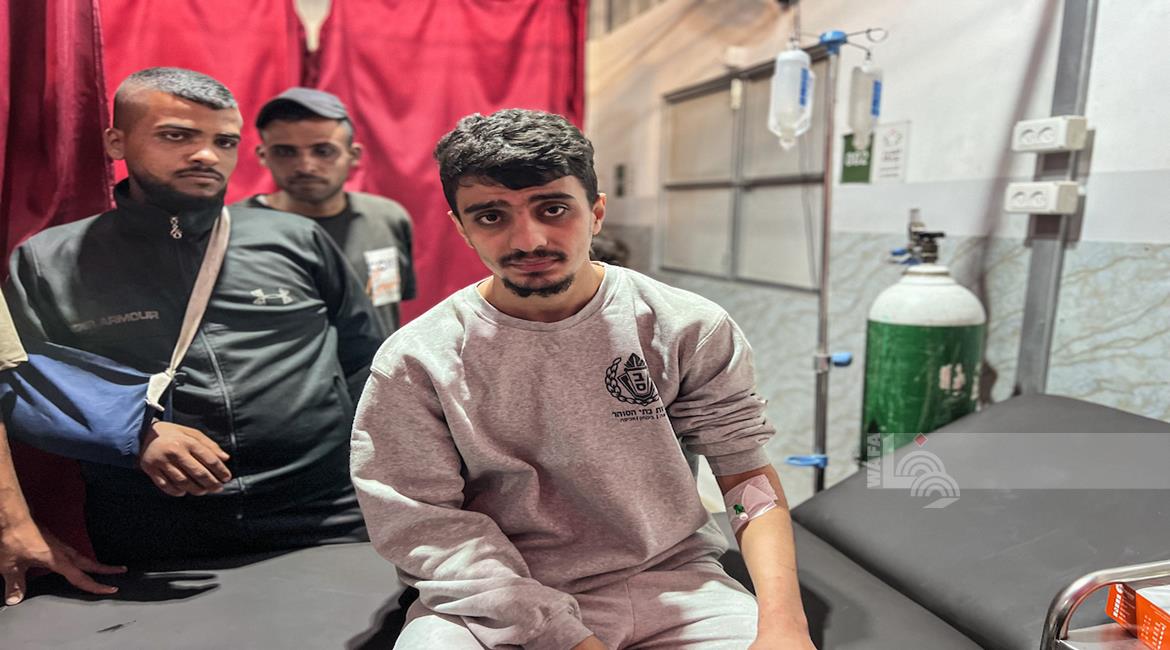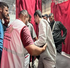 غزة - الأسير المحرر علي أبو علي يتلقى الرعاية الطبية في مستشفى العودة بالنصيرات وسط غزة بعد تحريره