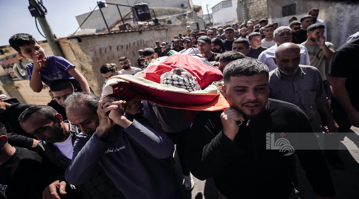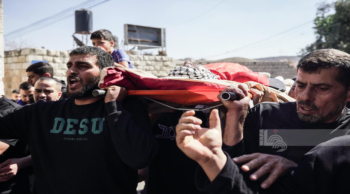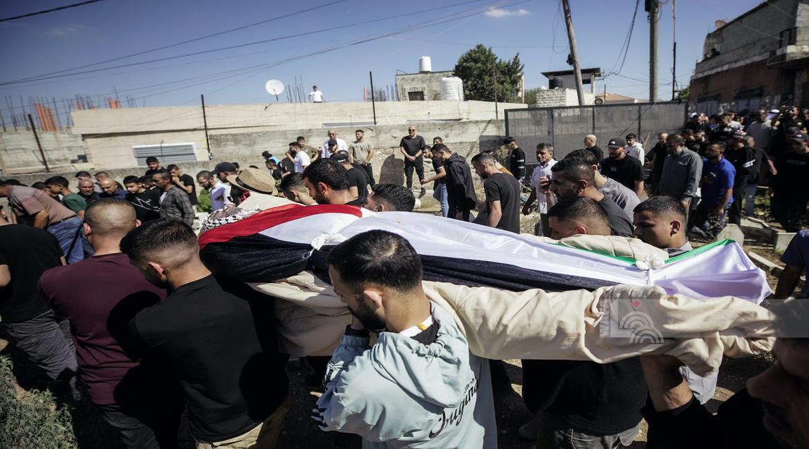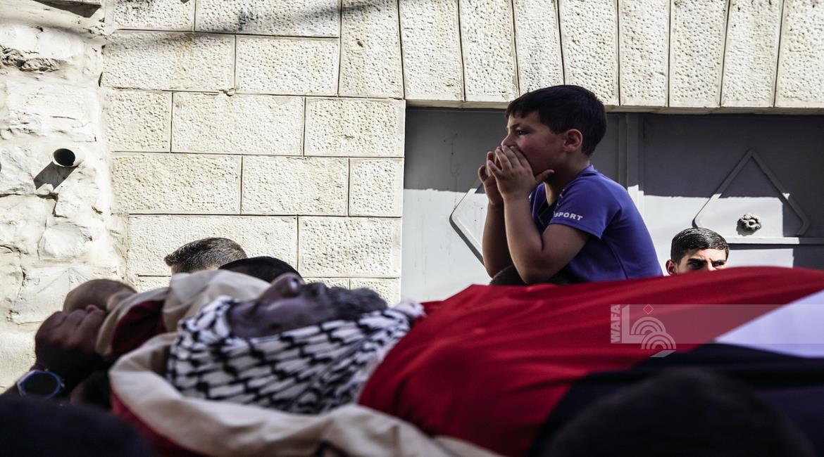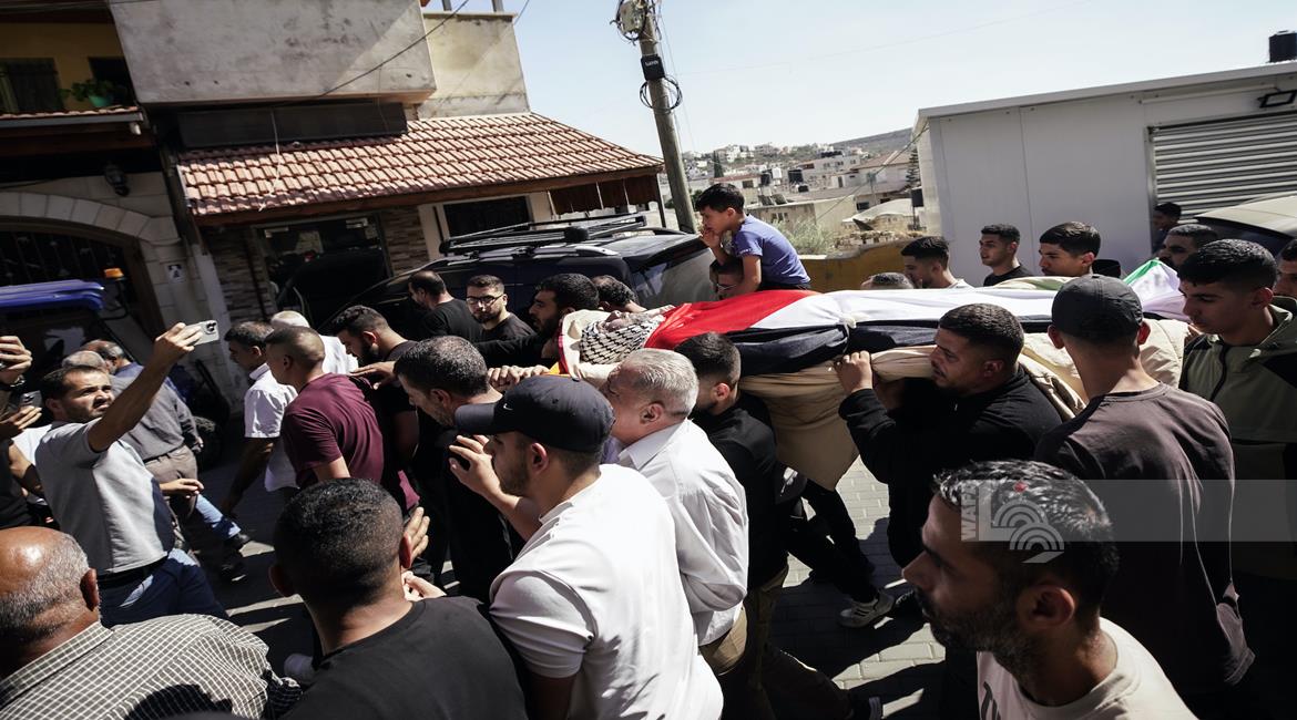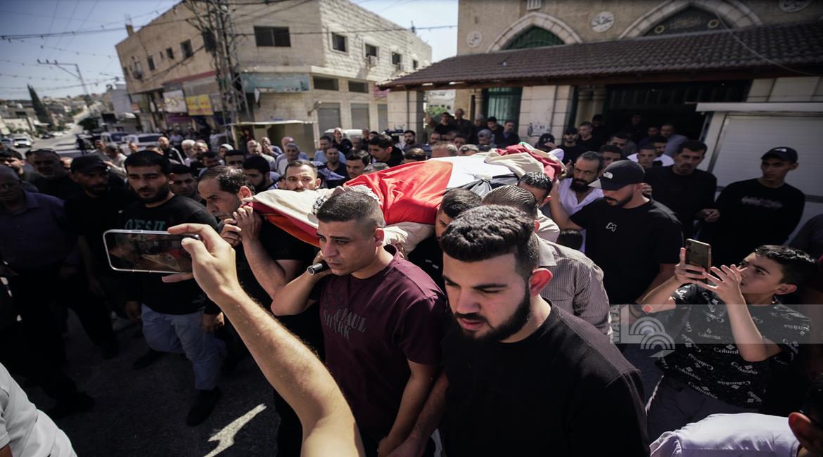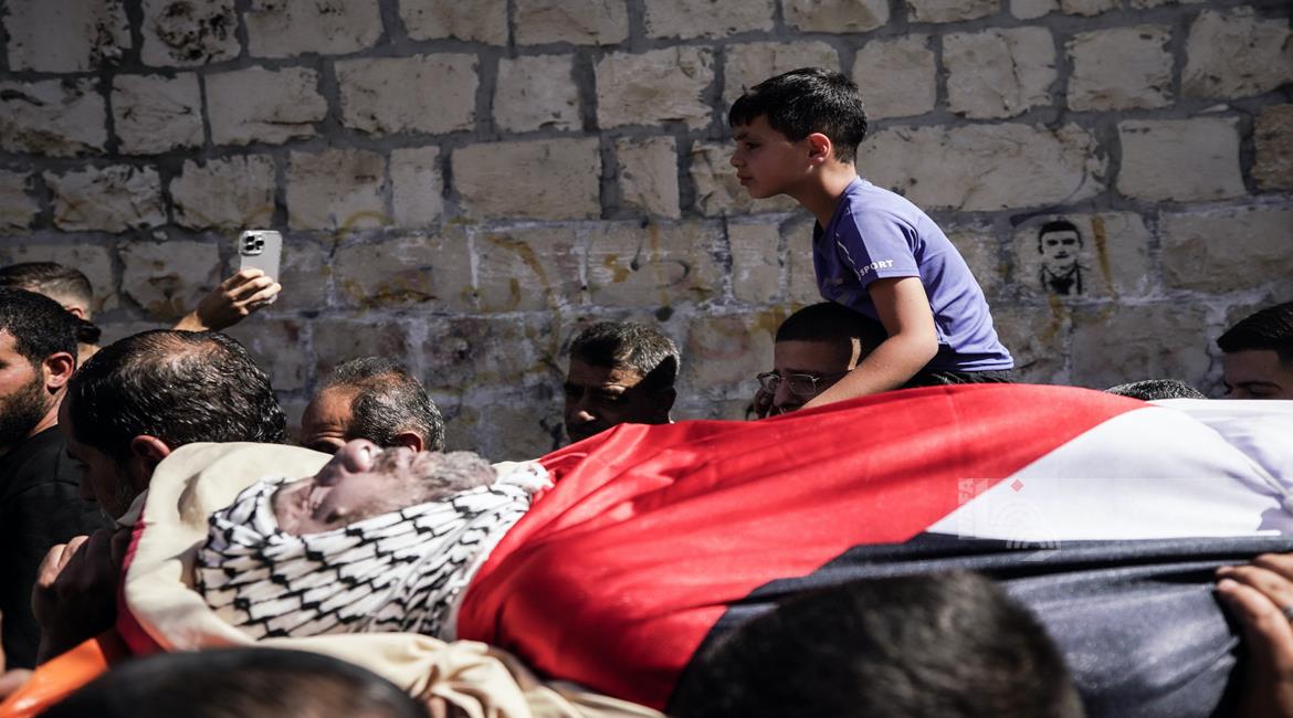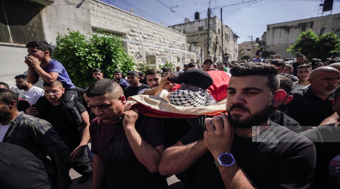 جنين - تشييع جثمان الشهيد سليم أبو عيشة (57 عاما) الى مثواه الأخير في بلدة الزبابدة