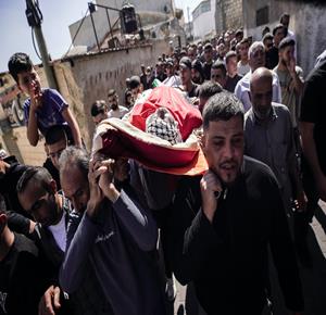 وداع وتشييع شهداء ارتقوا جراء القصف الإسرائيلي في خان يونس جنوب قطاع غزة