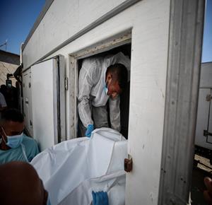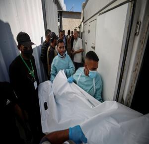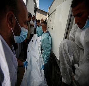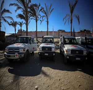 غزة - الصليب الأحمر ينقل جثامين شهداء كان يحتجزها الاحتلال الإسرائيلي إلى مستشفى ناصر في خان يونس جنوب غزة