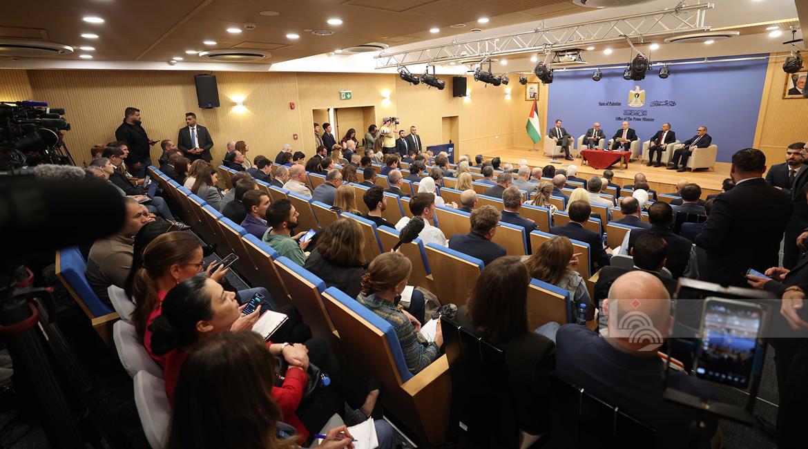 رام الله - رئيس الوزراء محمد مصطفى، خلال اجتماع موسع ضم حوالي 100 شخصية تمثل المؤسسات الدولية والأممية وأعضاء السلك الدبلوماسي المعتمد لدى دولة فلسطين، وذلك لتعزيز التنسيق المشترك، واطلاعهم على تحديثات خطة التعافي وإعادة إعمار قطاع غزة