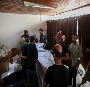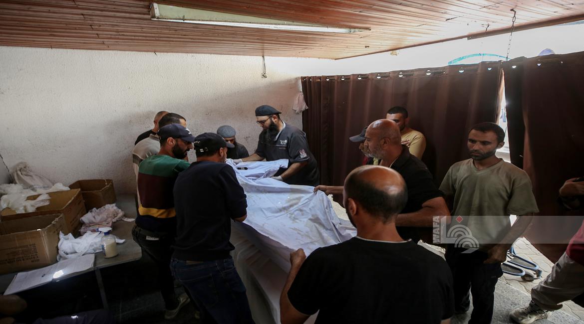 عائلات الشهداء تتعرف على جثامينهم المحتجزة بعد تسليمها عبر الصليب الأحمر في خان يونس