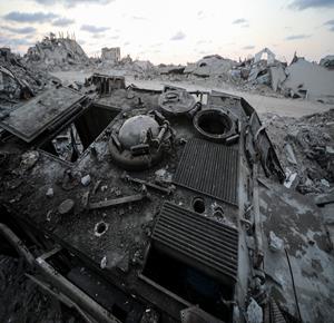 غزة - مخلفات عسكرية للاحتلال الاسرائيلي عقب انسحابه من حي الزيتون جنوب مدينة غزة