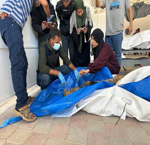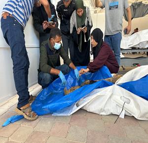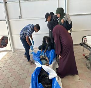 غزة - عائلات الشهداء تتعرف على جثامينهم المحتجزة بعد تسليمها عبر الصليب الأحمر في خان يونس