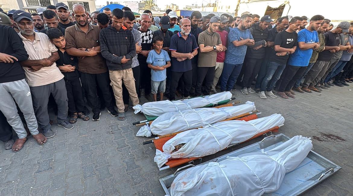 وداع وتشييع شهداء القصف الإسرائيلي في مستشفى الأقصى بدير البلح وسط قطاع غزة