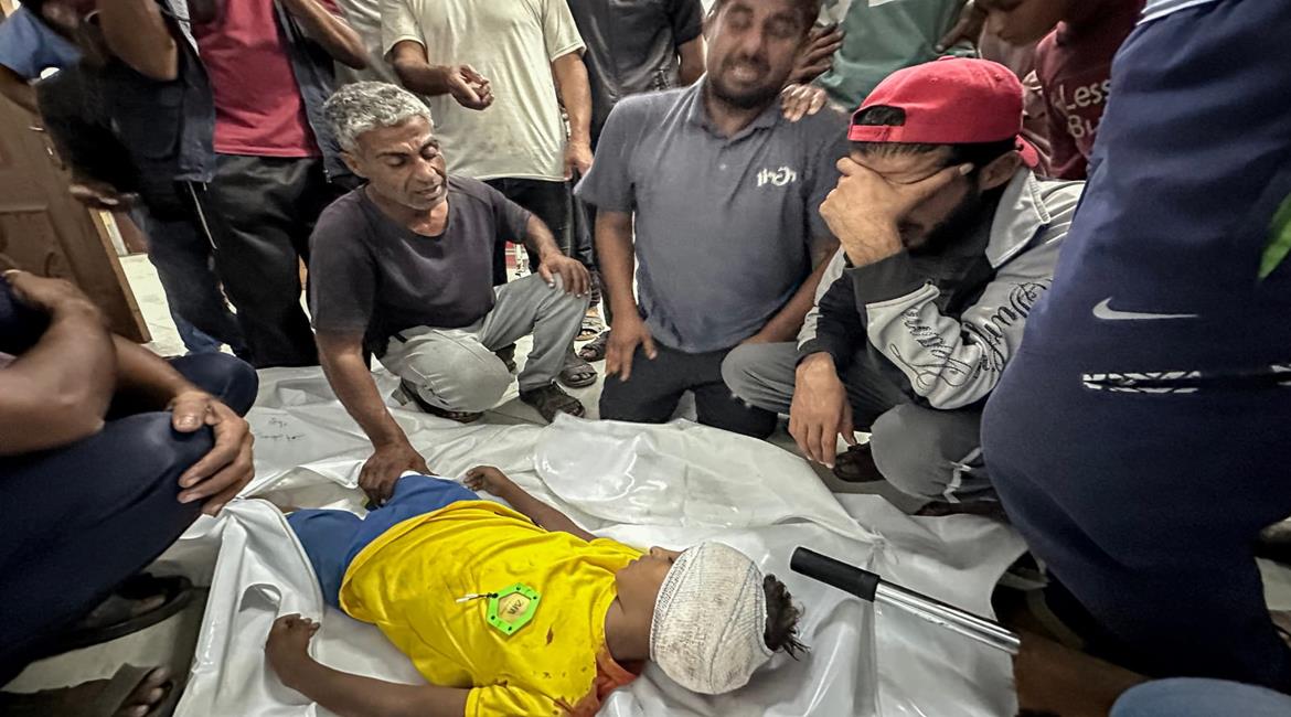 مواطنون ينقلون عددا من الشهداء والجرحى إلى مستشفى ناصر بعد استهداف خيمة تؤوي نازحين في خان يونس جنوب قطاع غزة