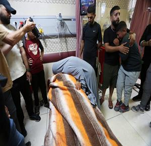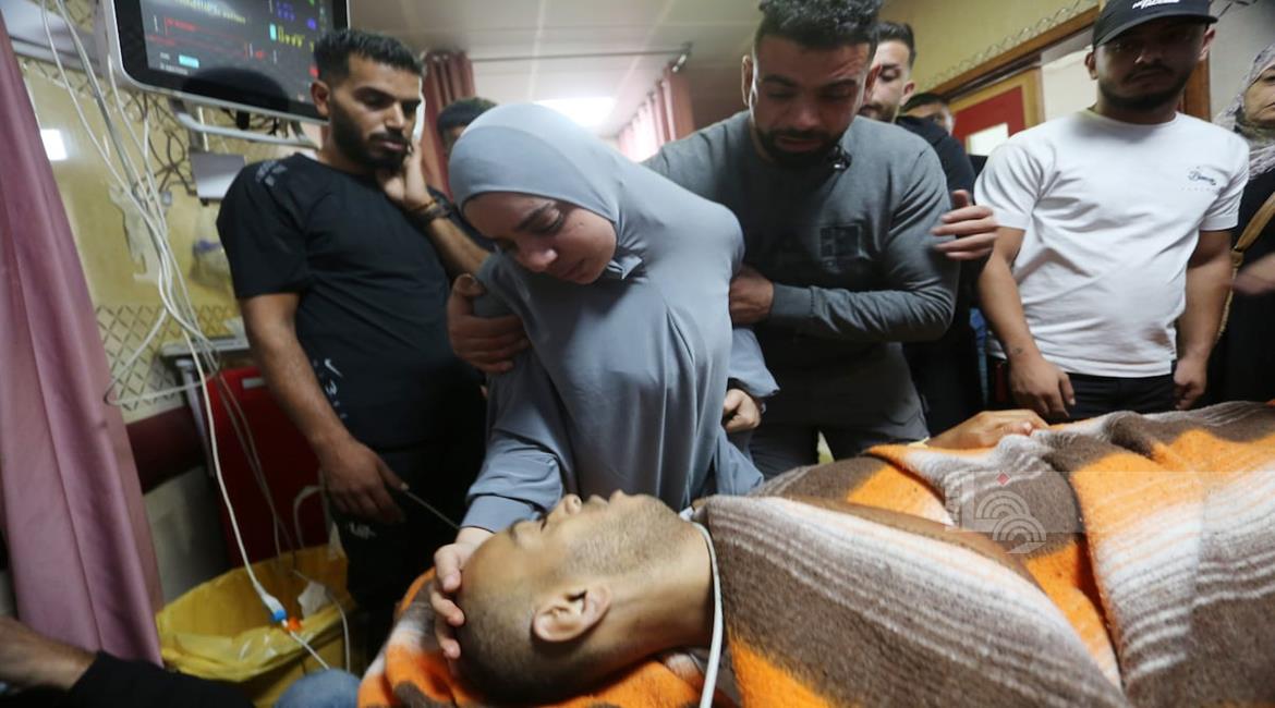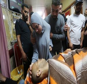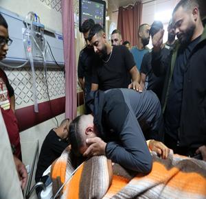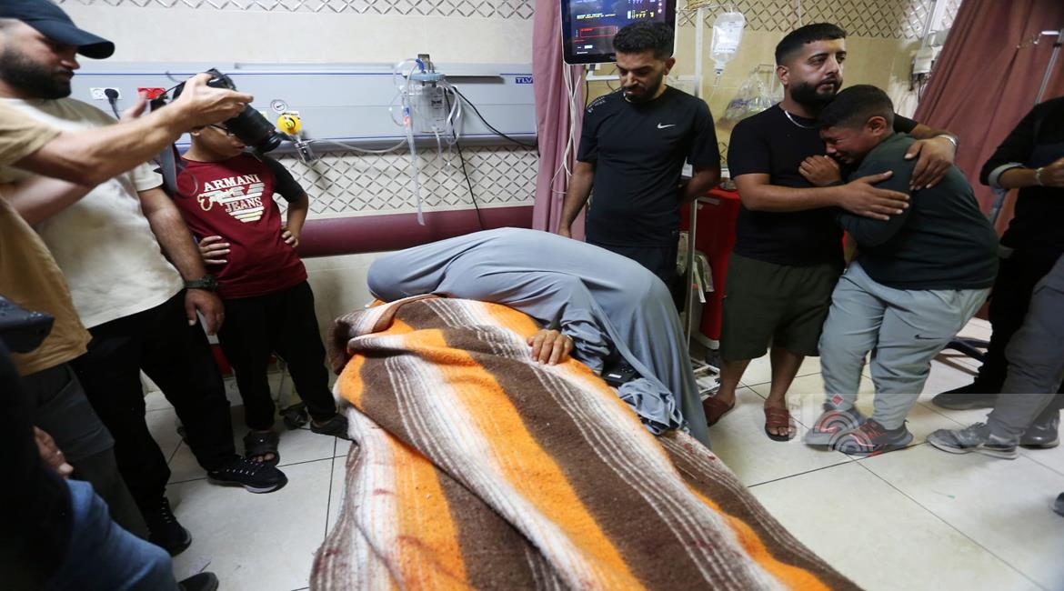 وداع وتشييع شهداء القصف الإسرائيلي في مستشفى الأقصى بدير البلح وسط قطاع غزة