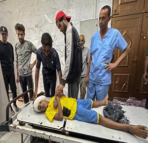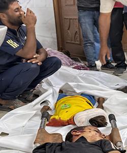 غزة - مواطنون ينقلون عددا من الشهداء والجرحى إلى مستشفى ناصر بعد استهداف خيمة تؤوي نازحين في خان يونس جنوب قطاع غزة