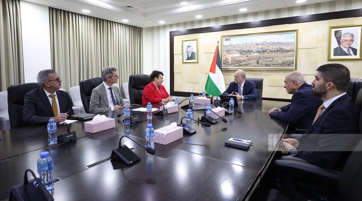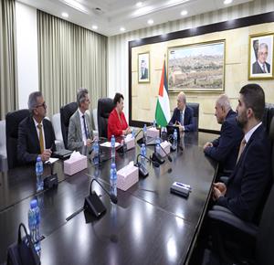 رام الله - رئيس الوزراء محمد مصطفى يستقبل وفدا من اتحاد البلديات الهولندية، بحضور وزير الحكم المحلي سامي حجاوي